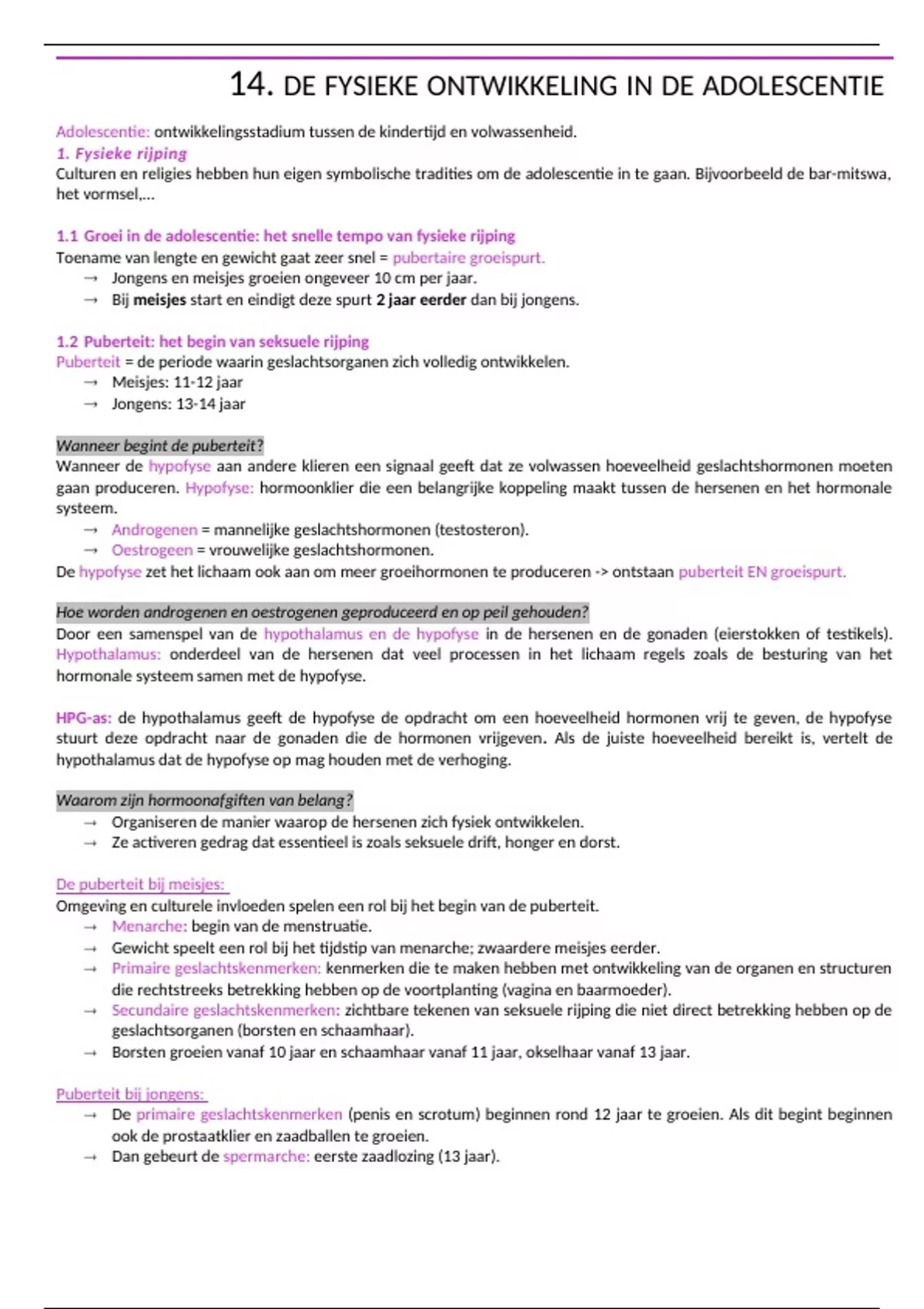 14. DE FYSIEKE ONTWIKKELING IN DE ADOLESCENTIE