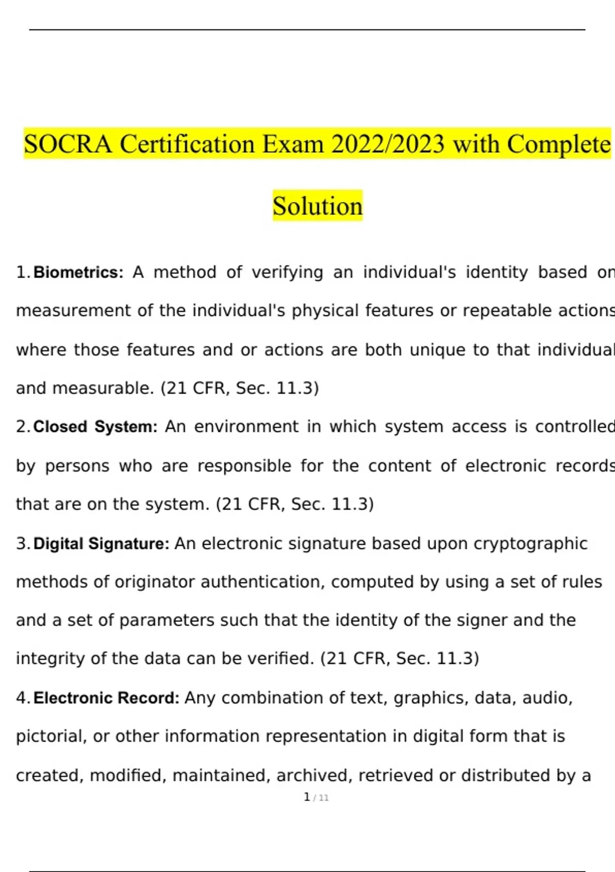 SOCRA Certification Exam 2022/2023 with Complete Solution