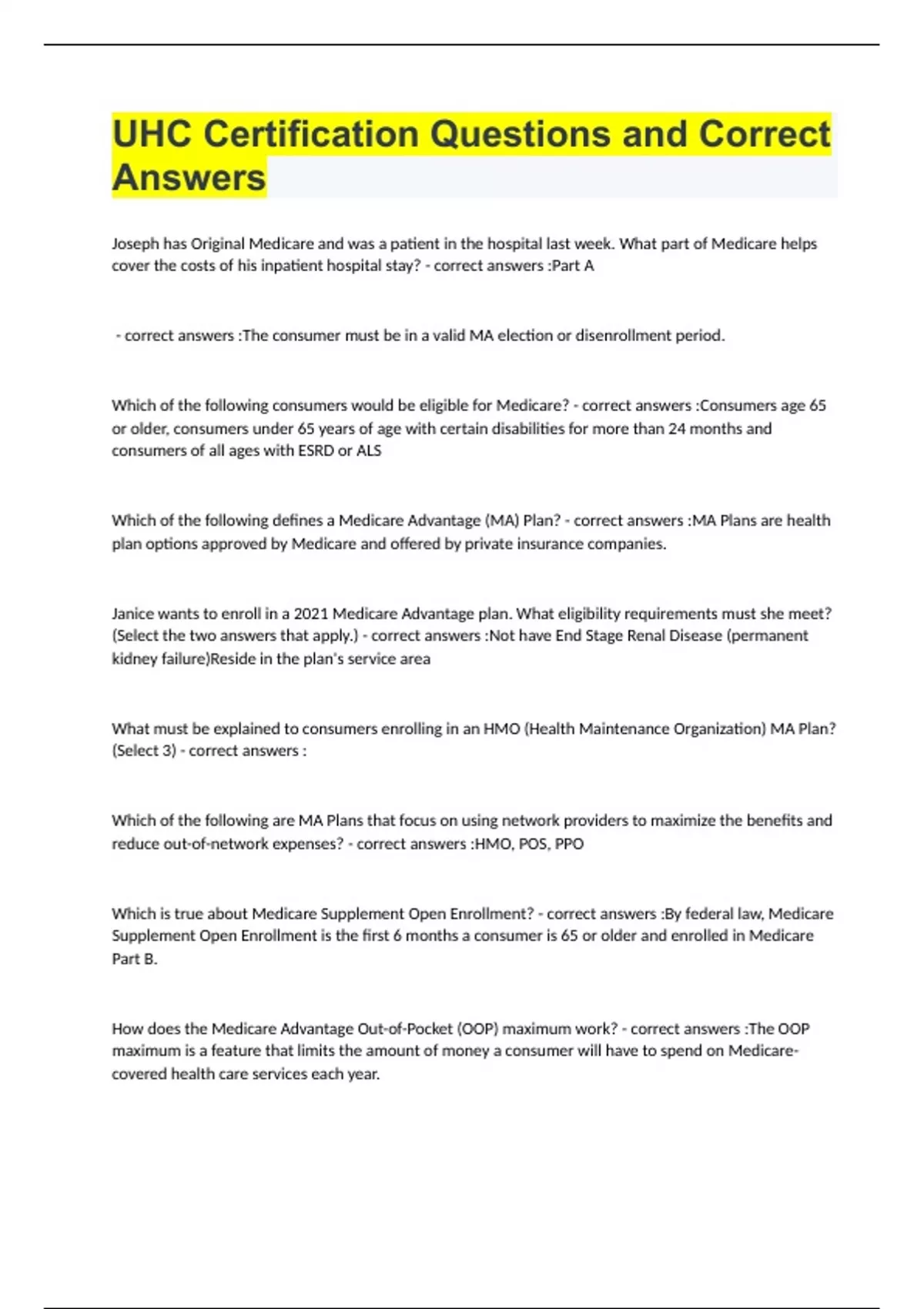 UHC Certification Questions and Correct Answer1.