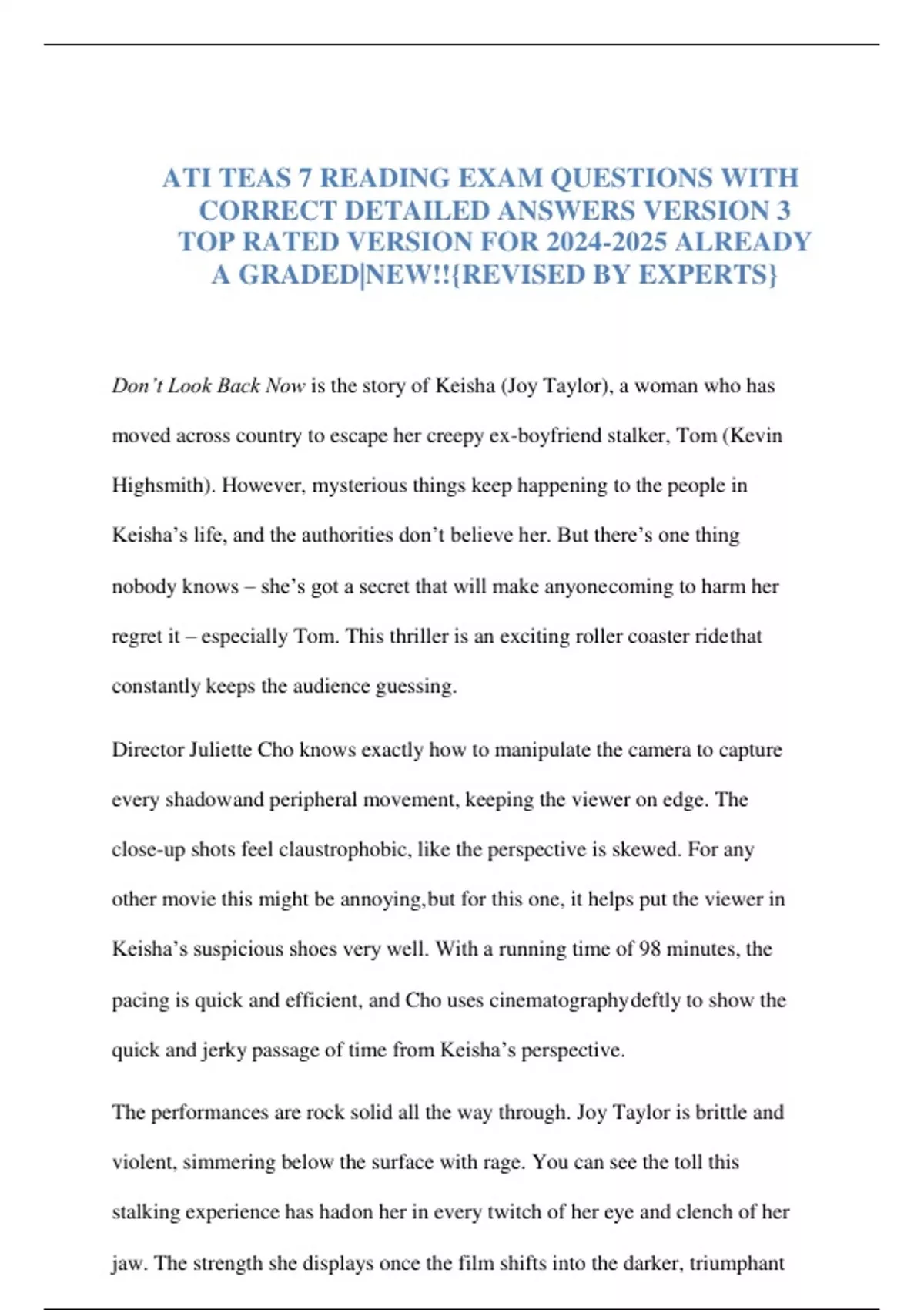 ATI TEAS 7 READING EXAM QUESTIONS WITH CORRECT DETAILED ANSWERS VERSION 3 TOP RATED VERSION FOR ALREADY A GRADED|NEW!!{REVISED BY EXPERTS}