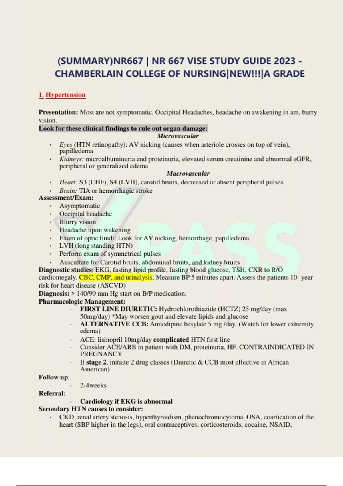 summarynr667 nr 667 vise study guide 2023 ch