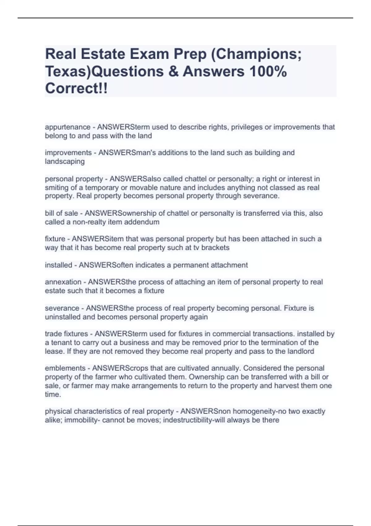 Real Estate Exam Prep (Champions; Texas)Questions & Answers 100% Correct!!