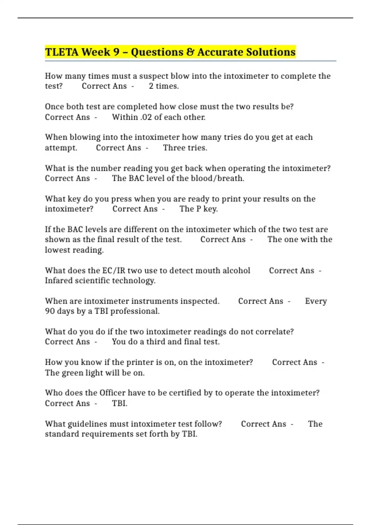What guidelines must intoximeter test follow? Correct Ans - The