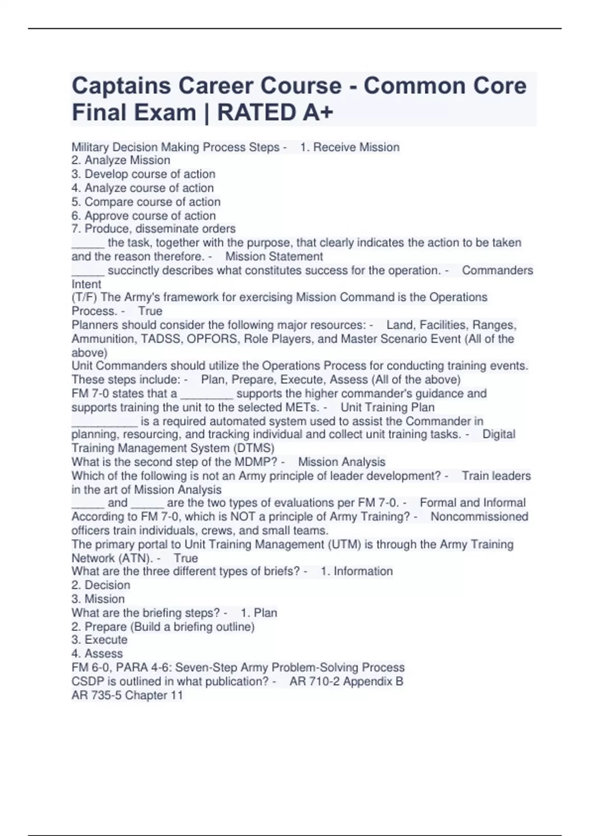 Captains Career Course - Common Core Final Exam | RATED A+