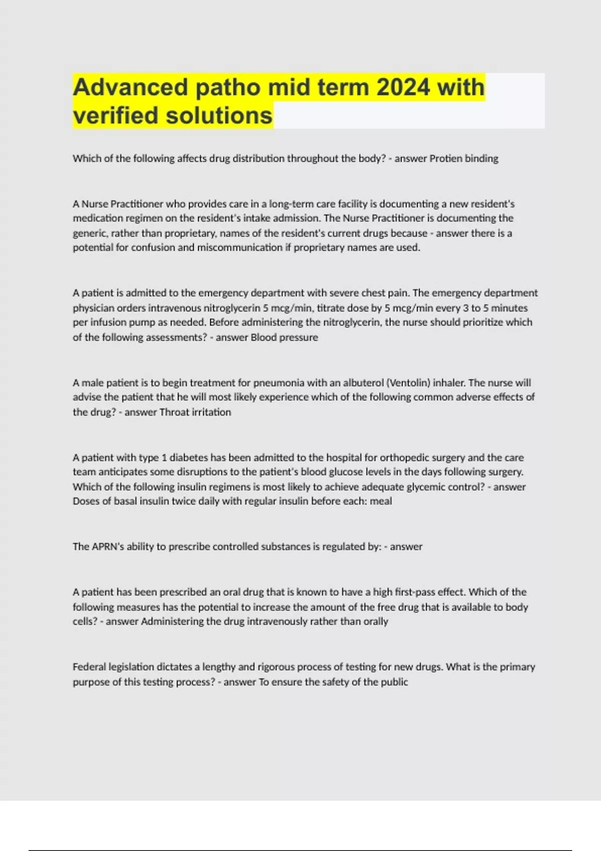 Advanced patho mid term 2024 with verified solutions.