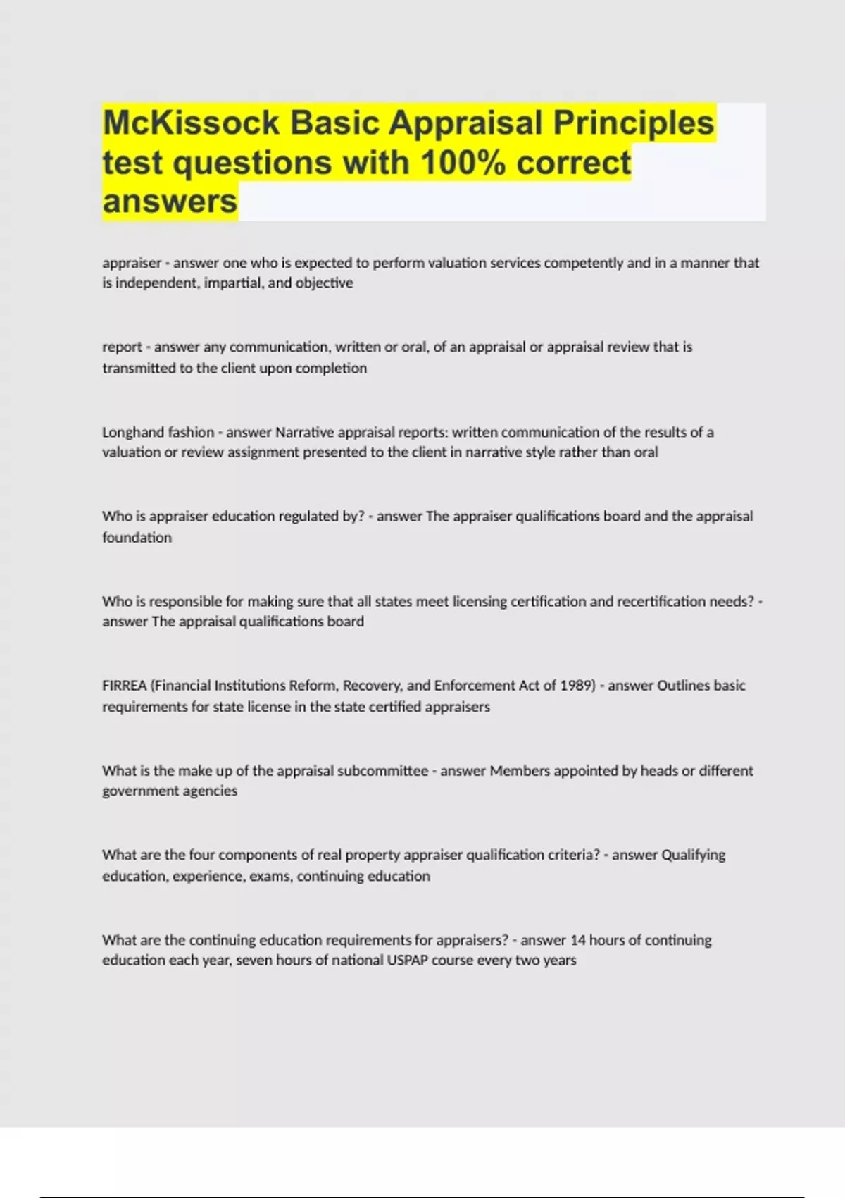 McKissock Basic Appraisal Principles test questions with 100% correct answers