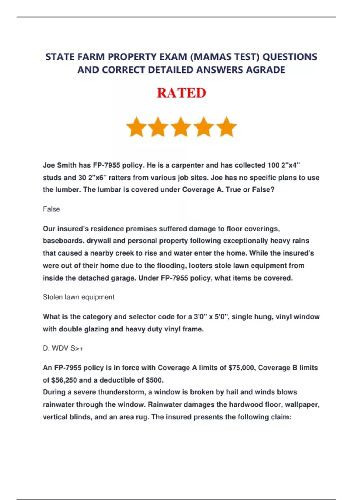 STATE FARM PROPERTY EXAM (MAMAS TEST) QUESTIONS AND CORRECT DETAILED ANSWERS AGRADE