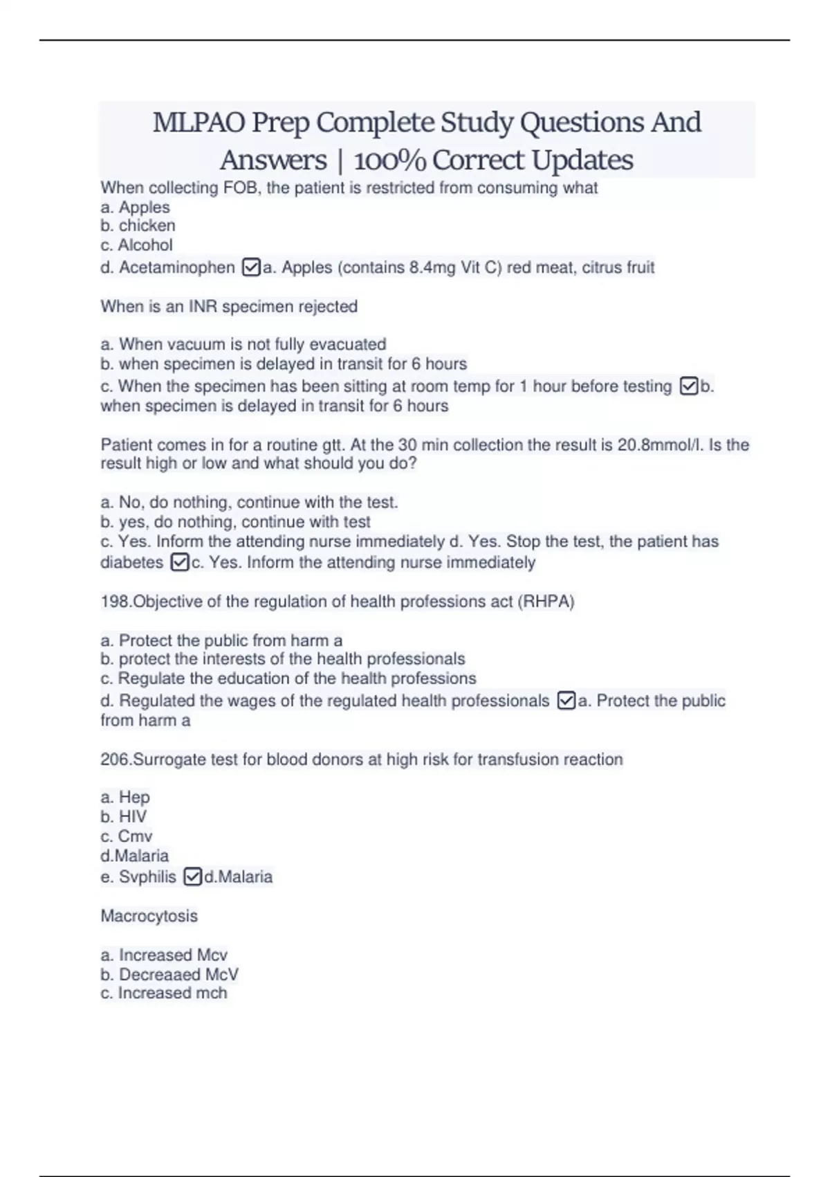 MLPAO Prep Complete Study Questions And Answers | 100% Correct Updates MLPAO Prep Complete Study Questions And Answers | 100% Correct Updates