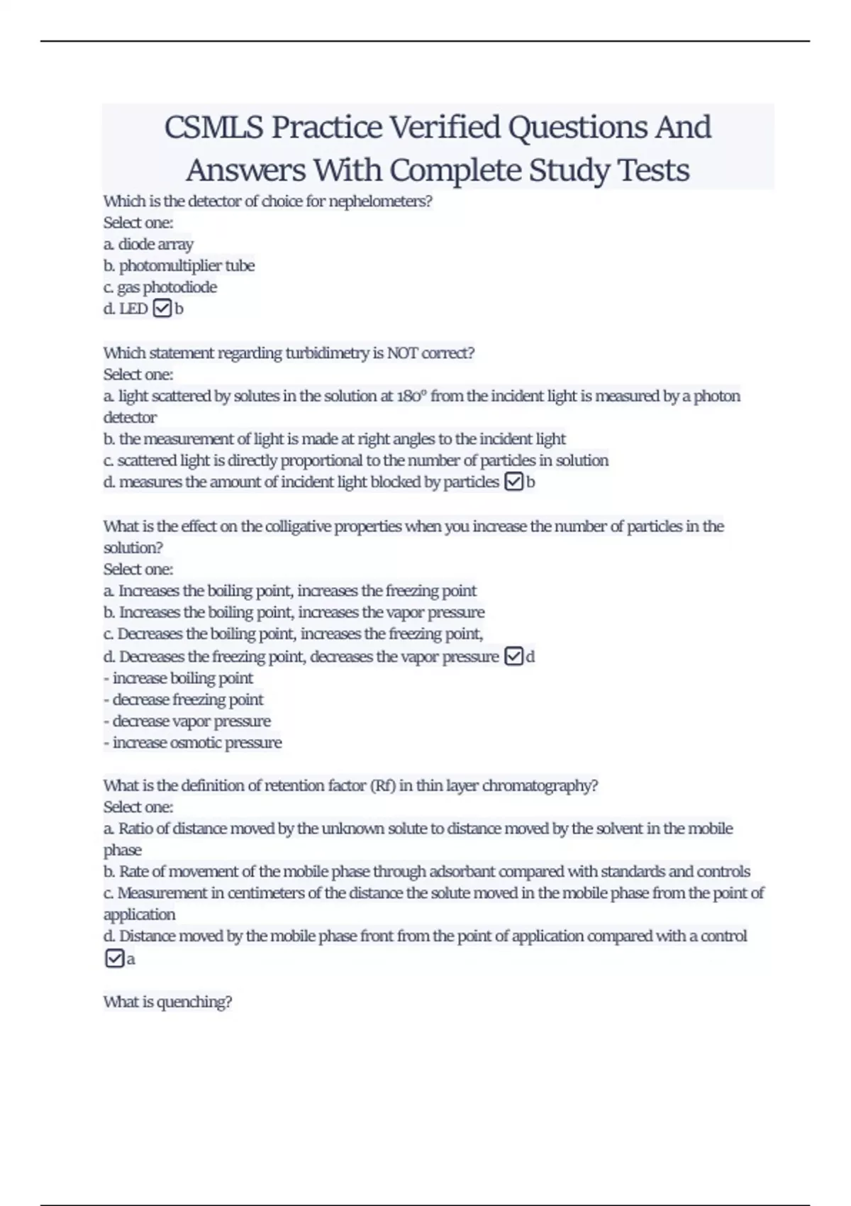 CSMLS Practice Verified Questions And Answers With Complete Study Tests CSMLS Practice Verified Questions And Answers With Complete Study Tests