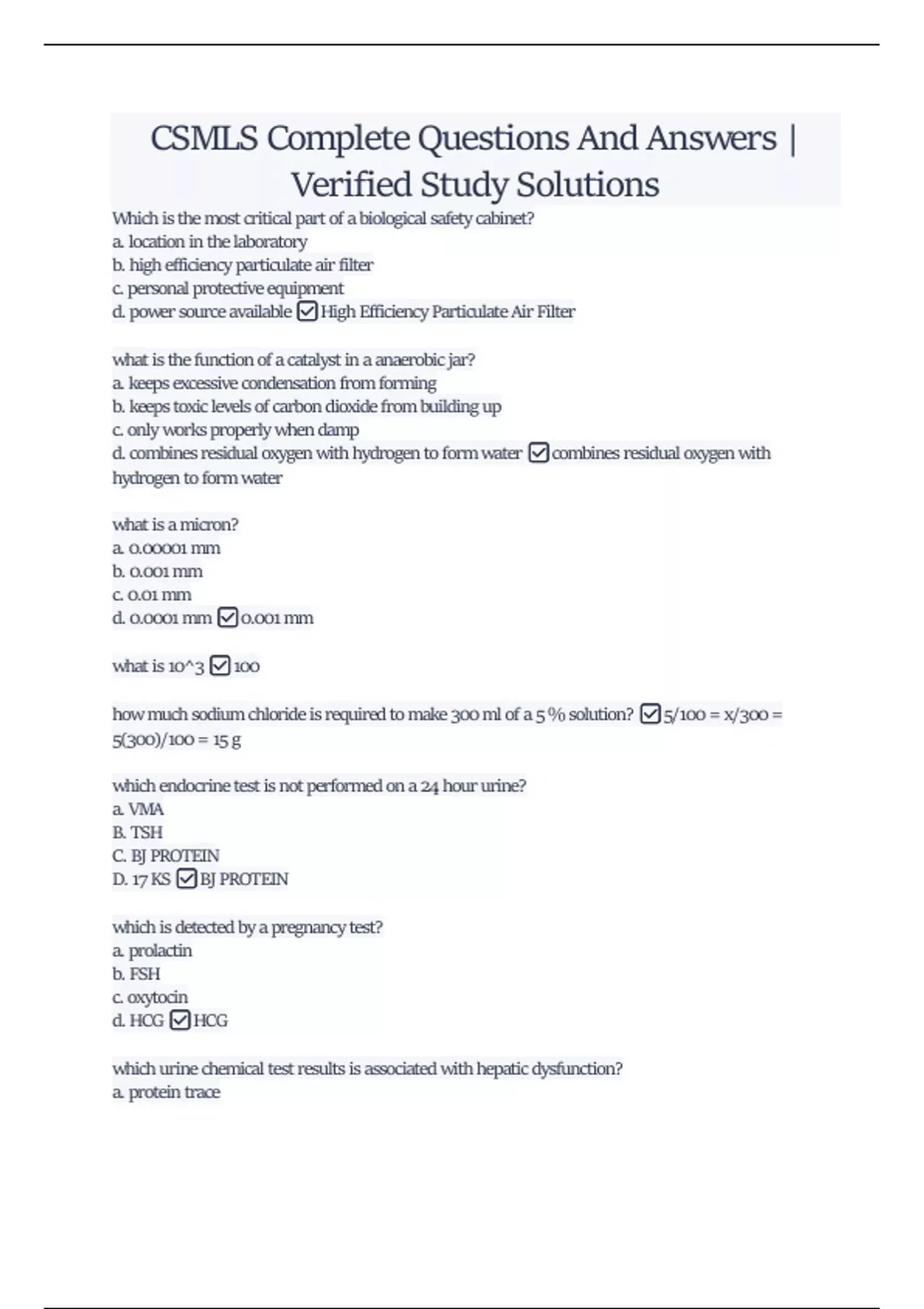 CSMLS Complete Questions And Answers | Verified Study Solutions CSMLS Complete Questions And Answers | Verified Study Solutions