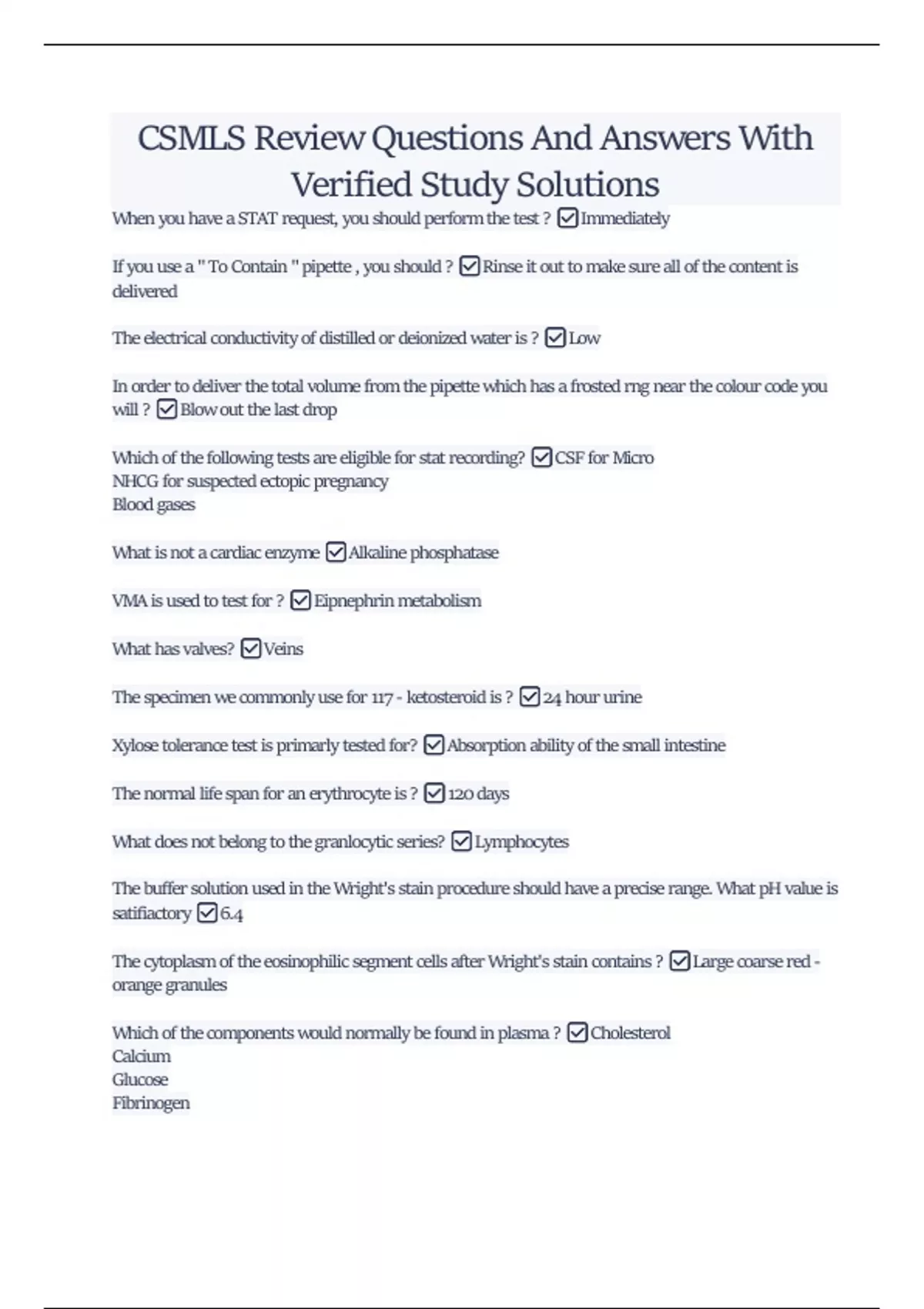 CSMLS Review Questions And Answers With Verified Study Solutions CSMLS Review Questions And Answers With Verified Study Solutions