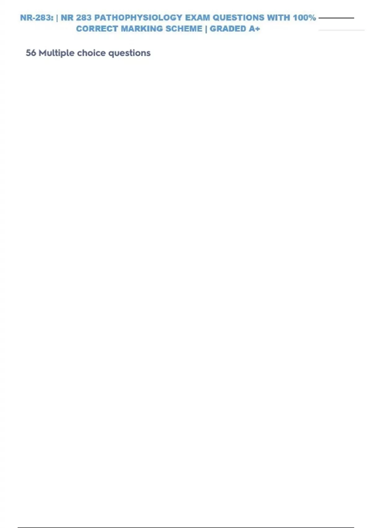 Summary - NR-283: | NR 283 PATHOPHYSIOLOGY /NR-283: | NR 283 PATHOPHYSIOLOGY EXAM 1&2 REVIEW WITH 100% SOLVED SOLUTIONS| VERIFIED ANSWERS