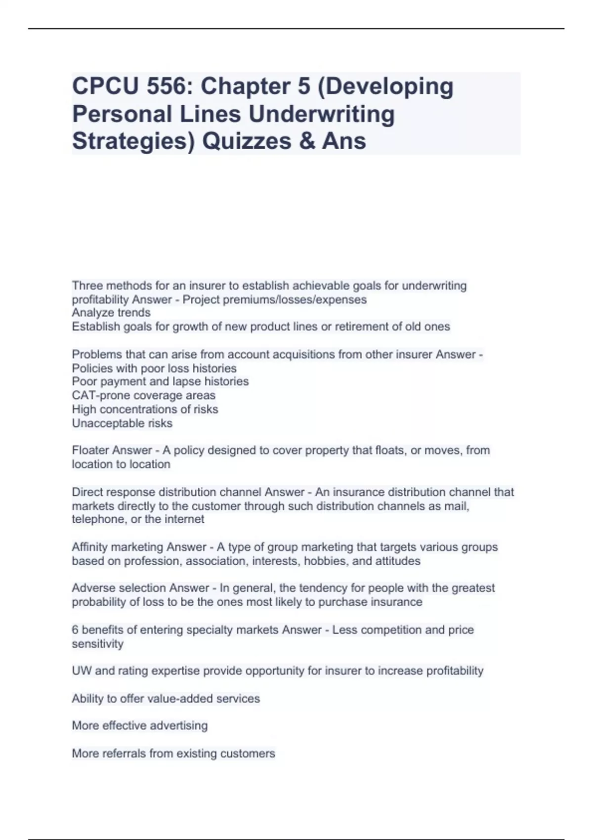CPCU 556: Chapter 5 (Developing Personal Lines Underwriting Strategies) Quizzes & Ans