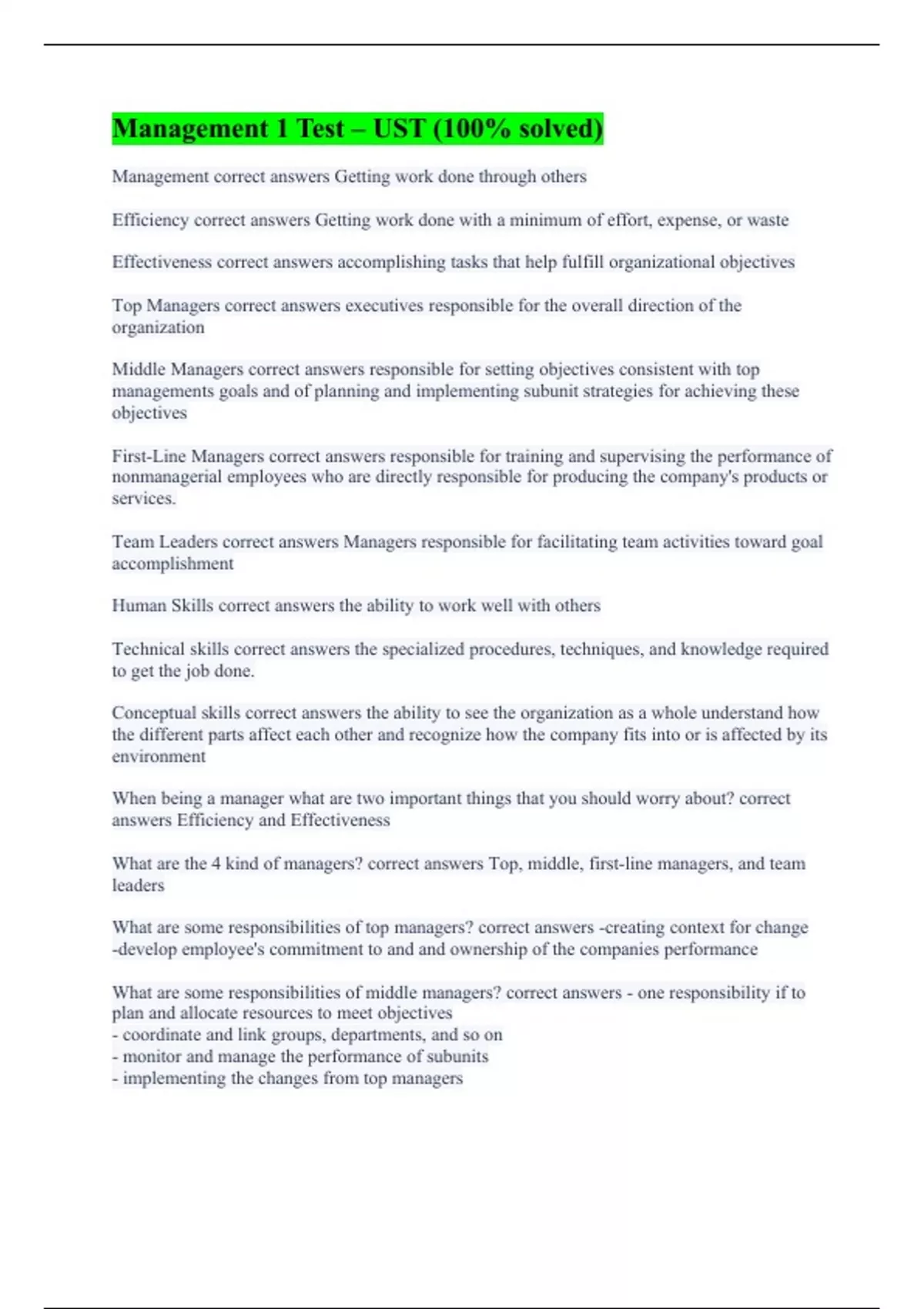 Management 1 Test – UST (100% solved)