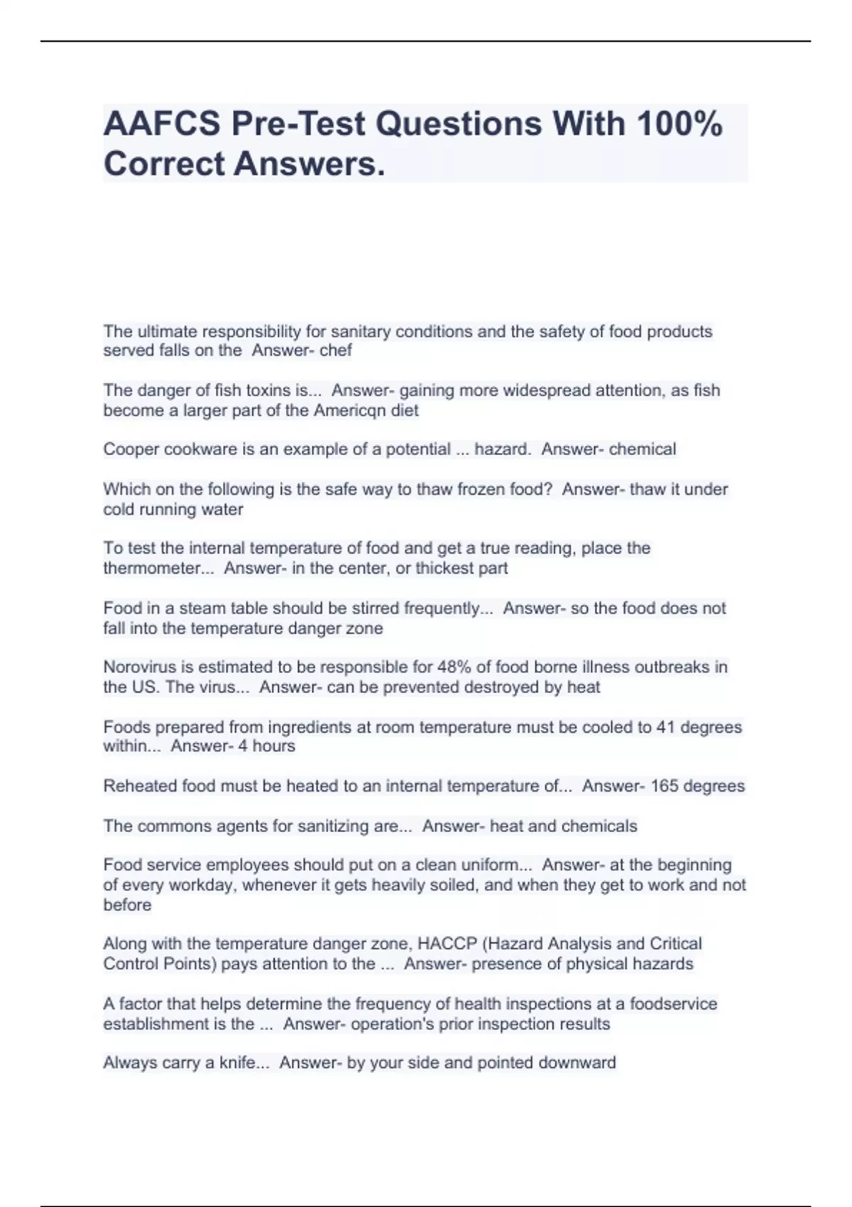 aafcs pre test questions with 100 correct answers
