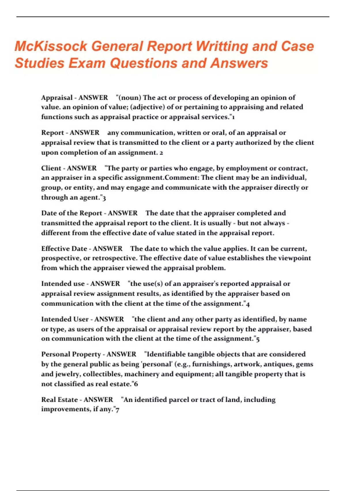 McKissock - General Report Writing and Case Studies Exam Questions and Answers