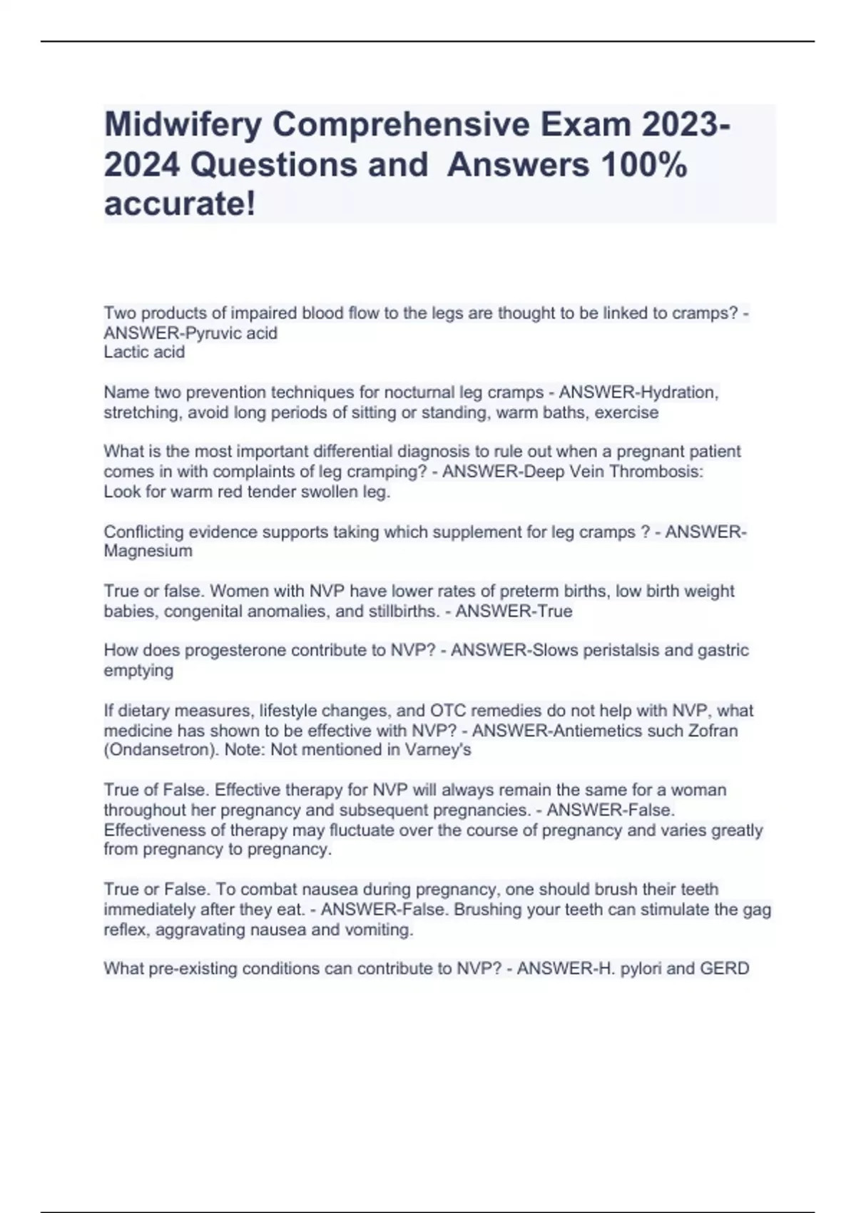 immediately to provider. - ANSWER-False. Leg cramps are completely normal during