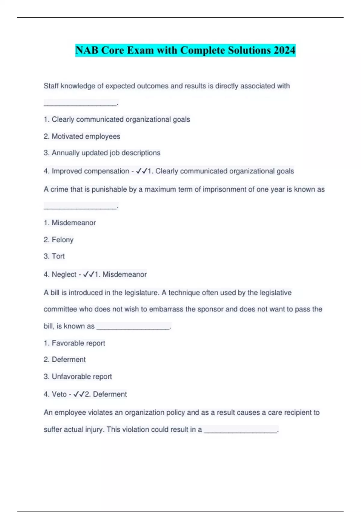 NAB Core Exam with Complete Solutions 2024