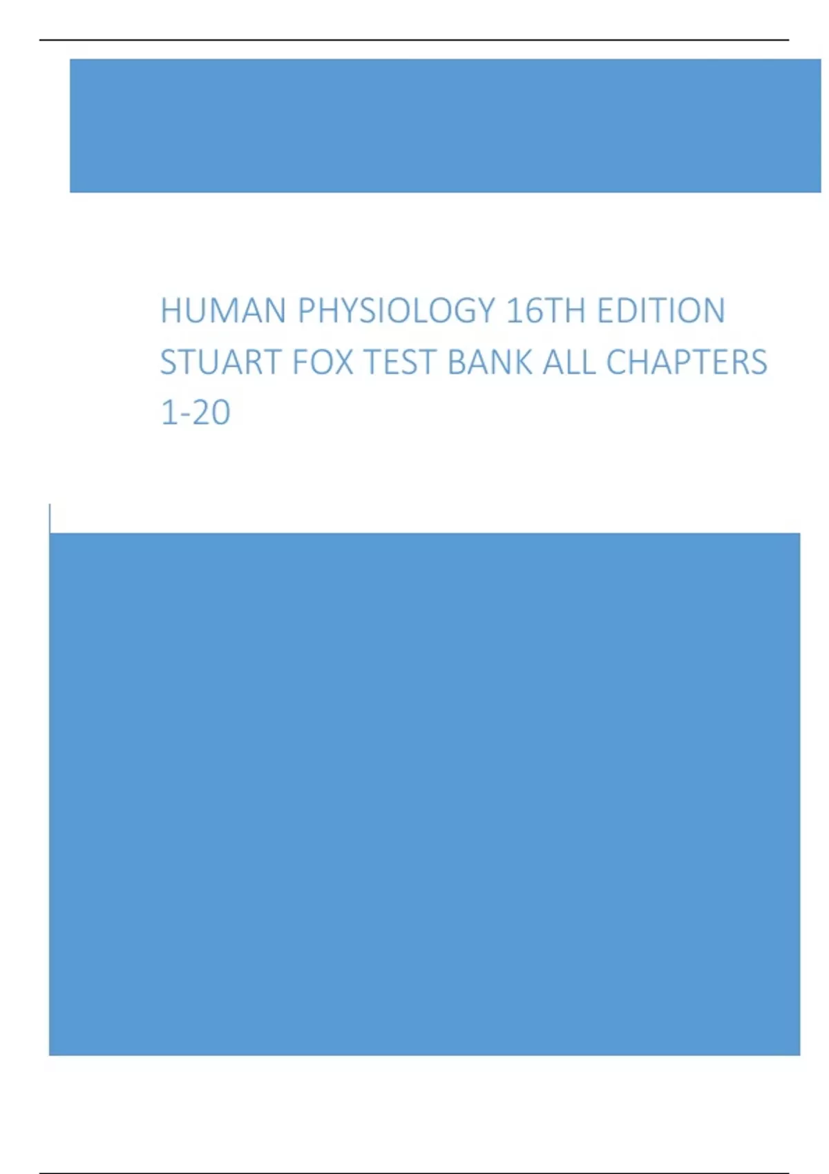 Human Physiology 16th Edition Stuart Fox Test Bank ALL Chapters 1-20