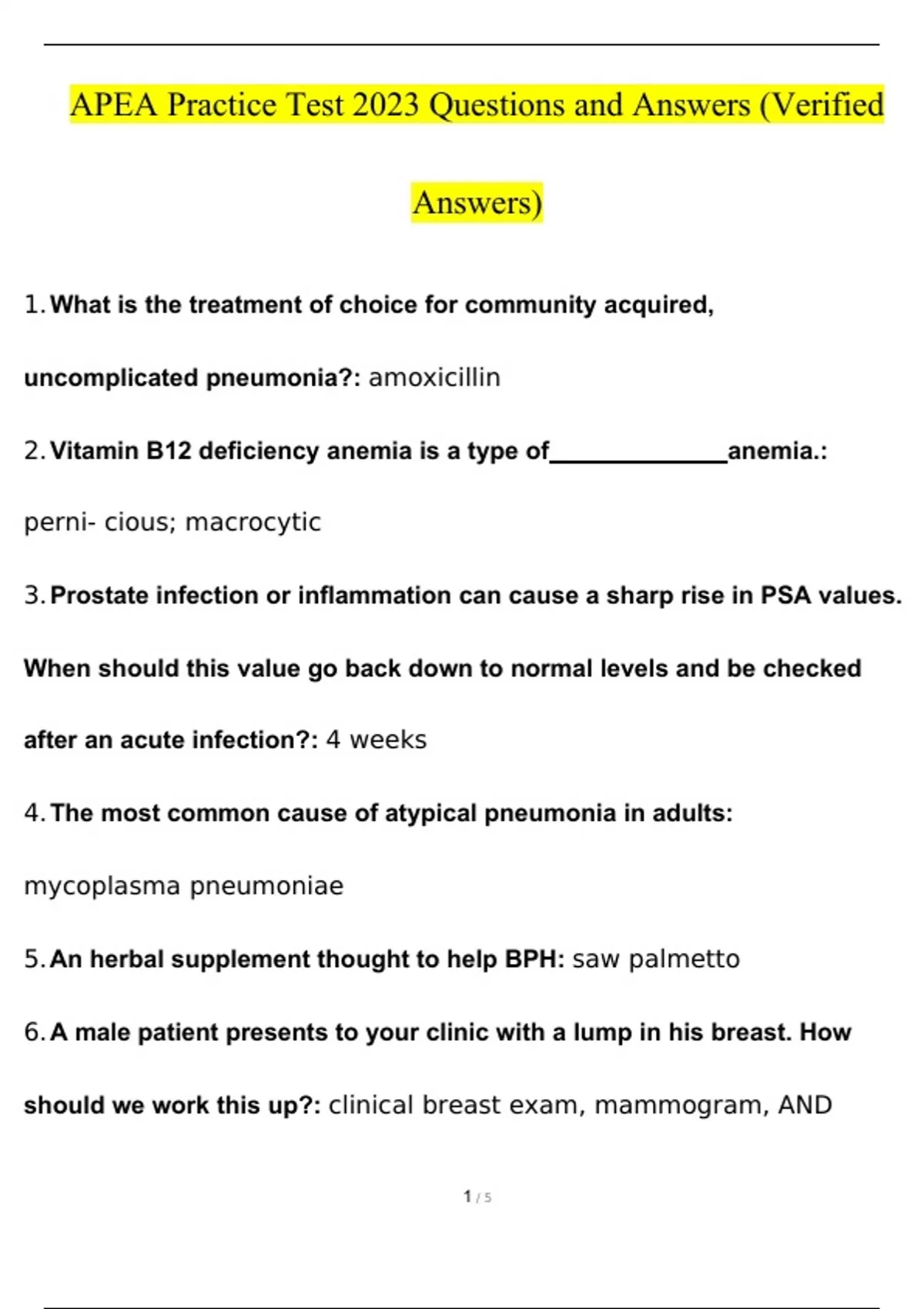 APEA Predictor STUDY BUNDLE PACK SOLUTION 2023 (Questions and Answers )(Verified Answers)