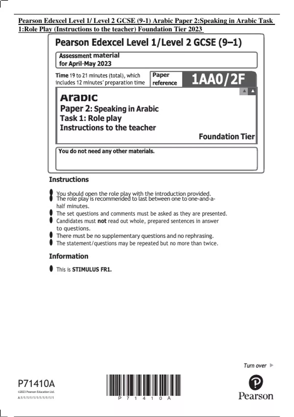 1:Role Play (Instructions to the teacher) Foundation Tier 2023