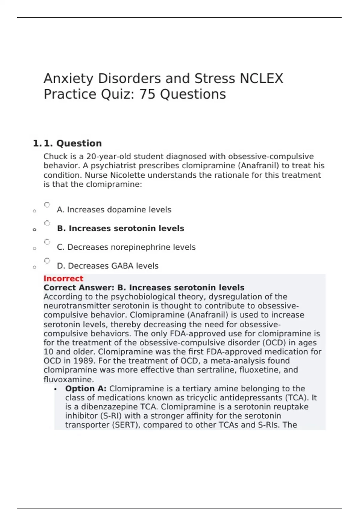 Anxiety Disorders and Stress NCLEX Practice Quiz: 75 Questions