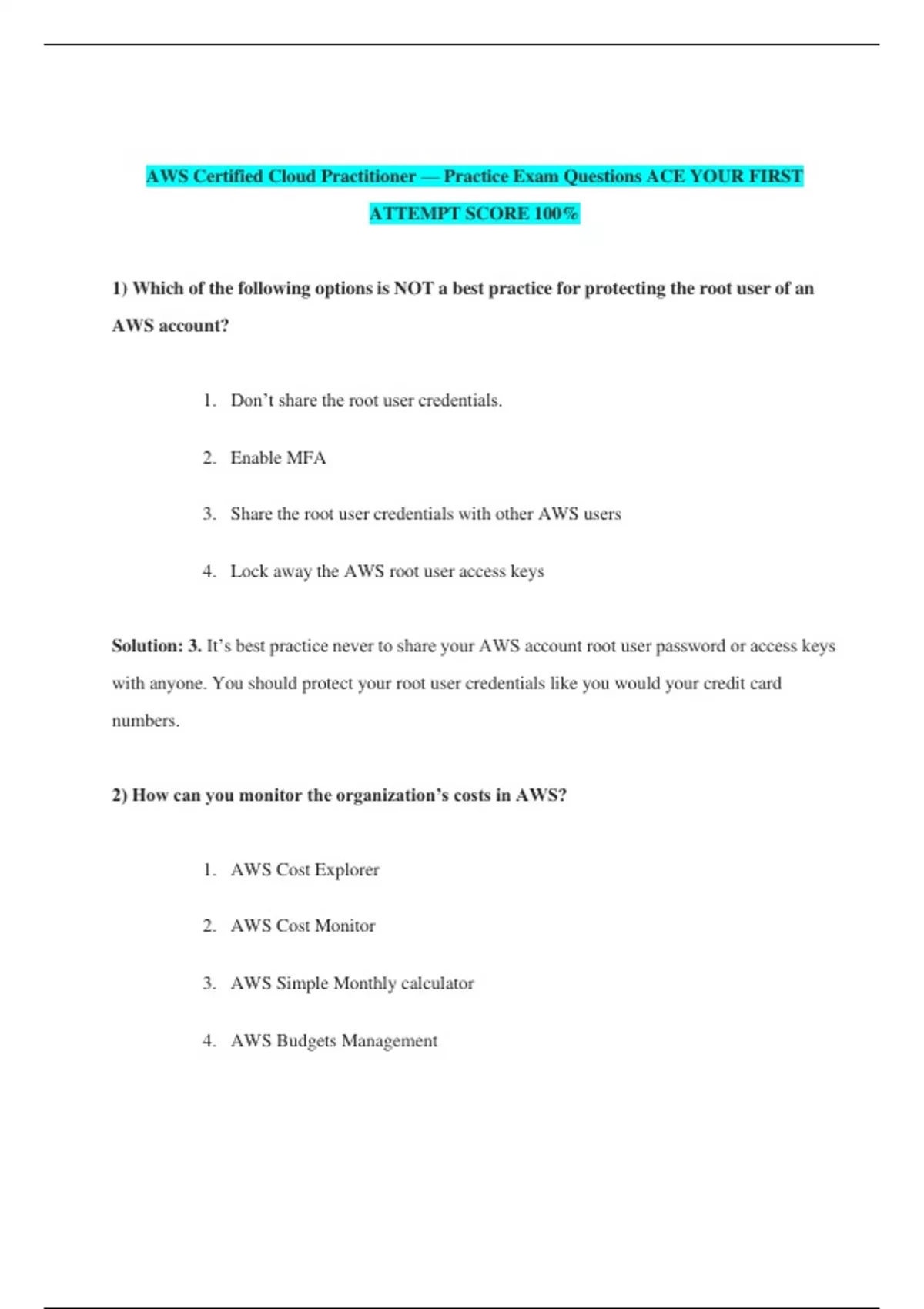 AWS-Certified-Cloud-Practitioner_Sample-Questions GUARANTEED A+