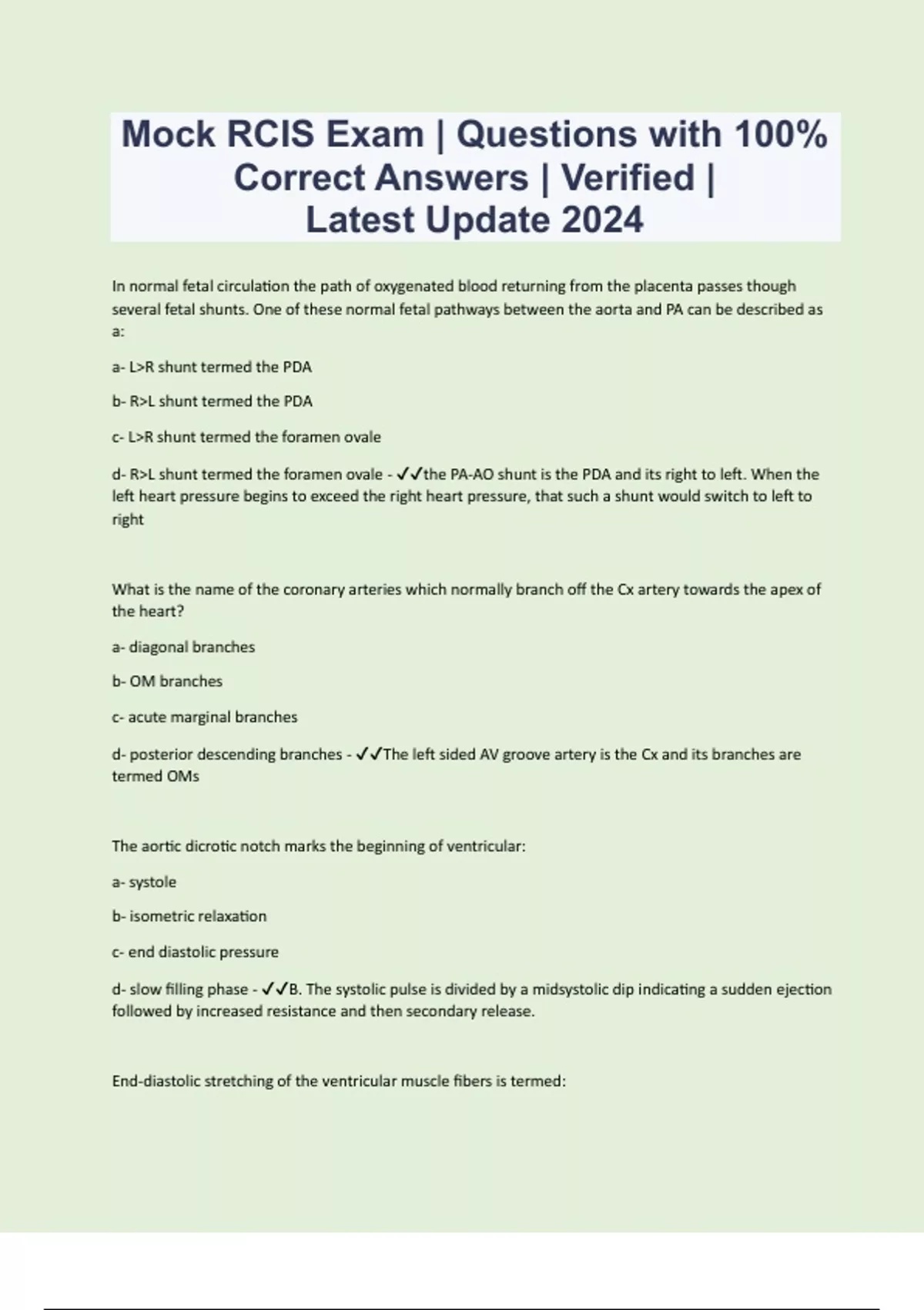 Mock RCIS Exam | Questions with 100% Correct Answers | Verified | Latest Update 2024