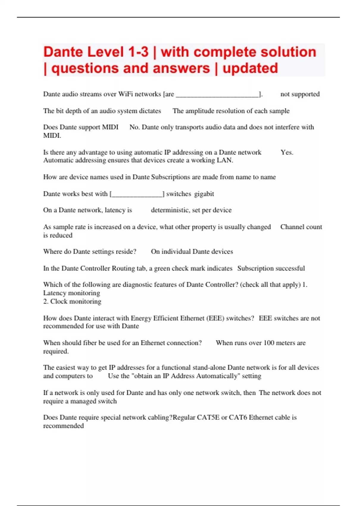 Dante Level 1-3 | with complete solution | questions and answers | updated