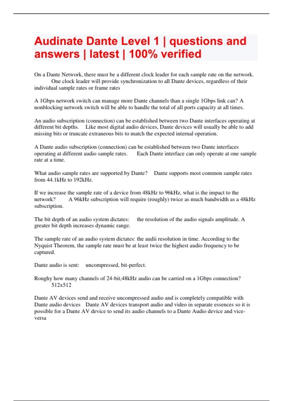 Audinate Dante Level 1 | questions and answers | latest | 100% verified