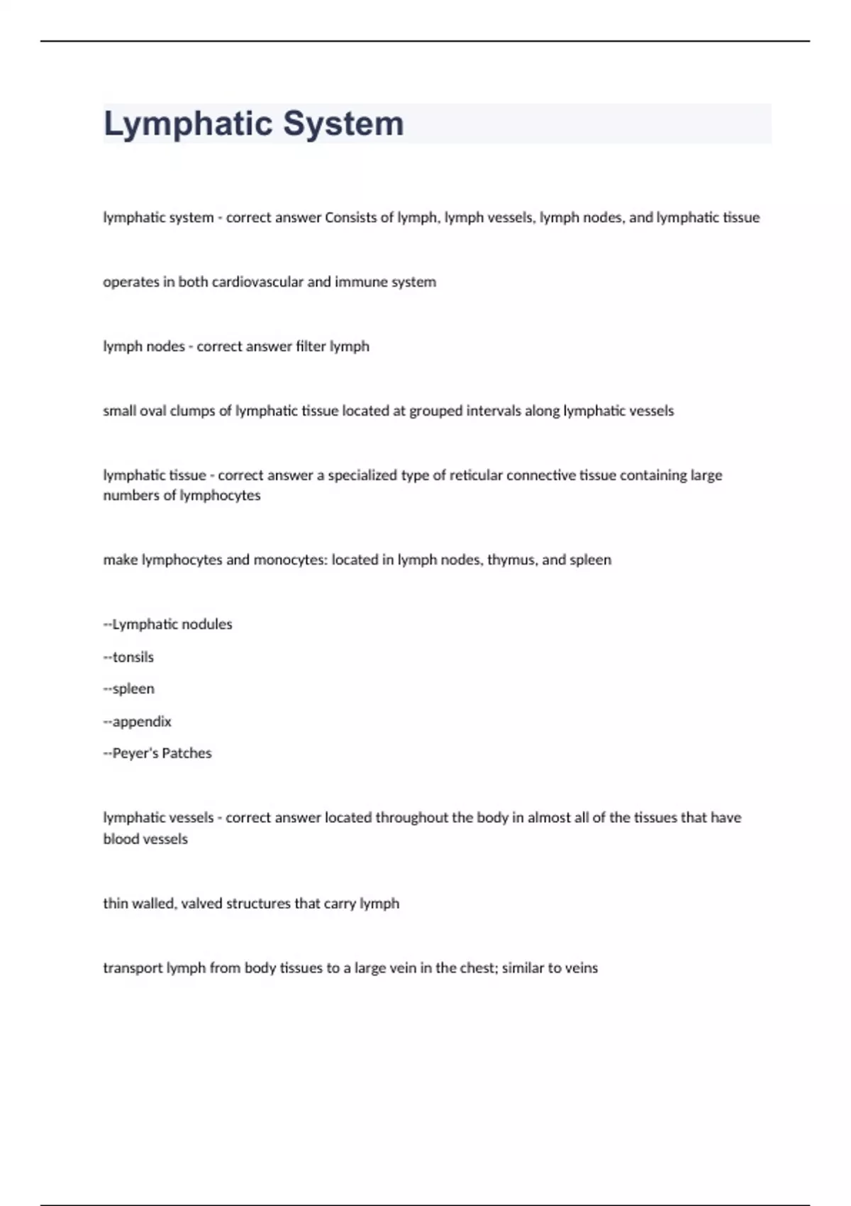 Lymphatic System questions with complete solutions 2023/2024