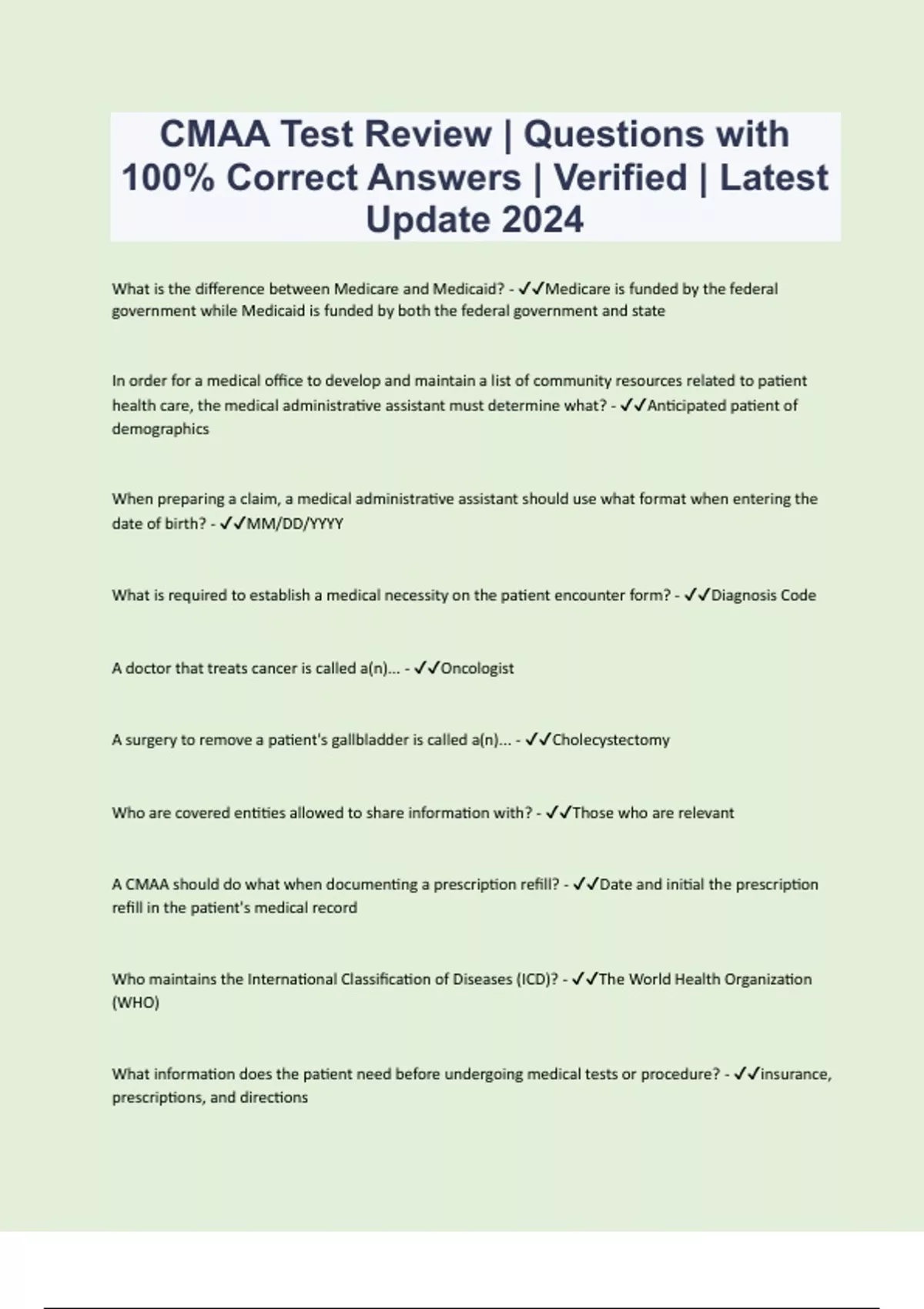 CMAA Test Review | Questions with 100% Correct Answers | Verified | Latest Update 2024