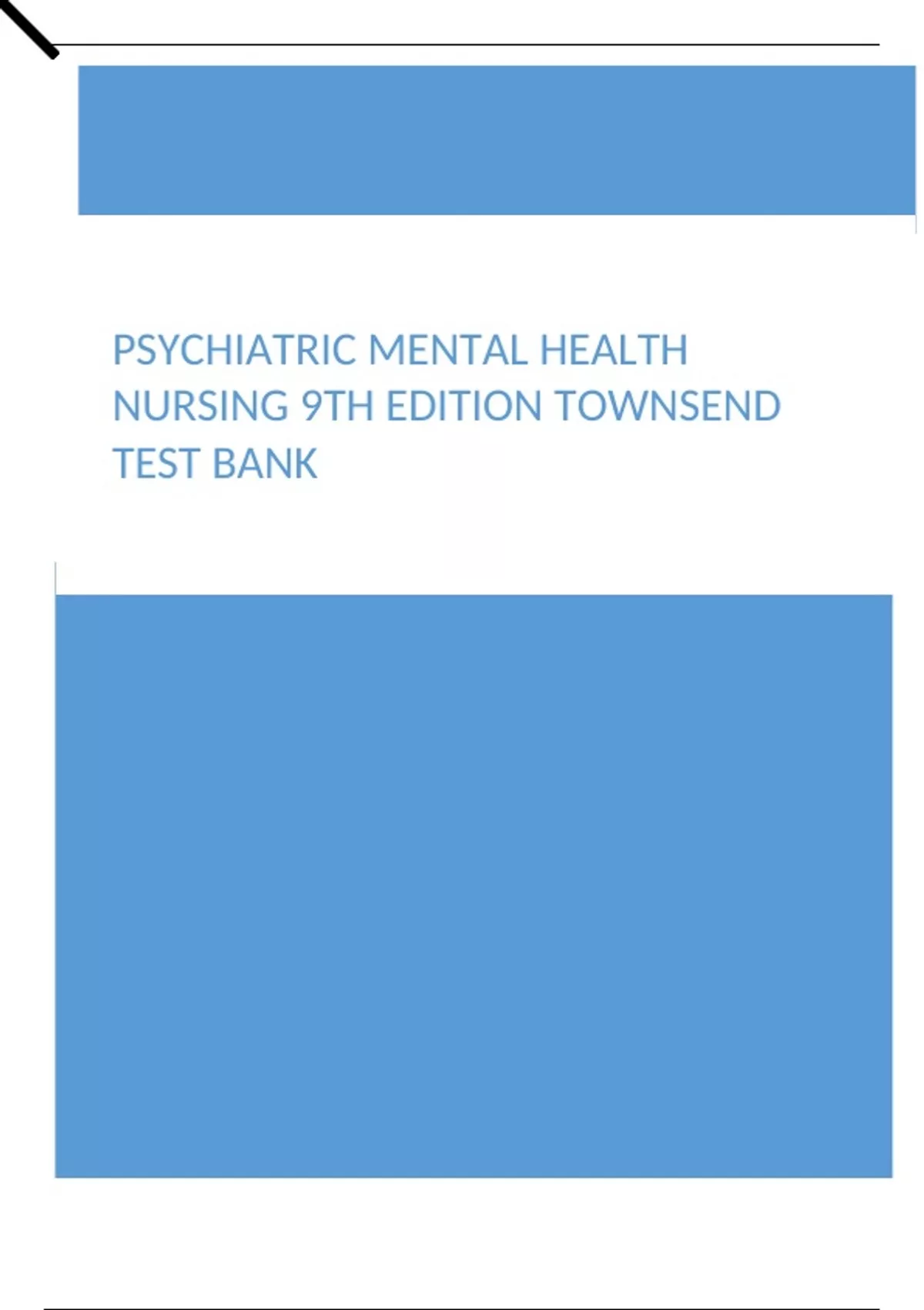 Psychiatric Mental Health Nursing 9th Edition Townsend Test Bank