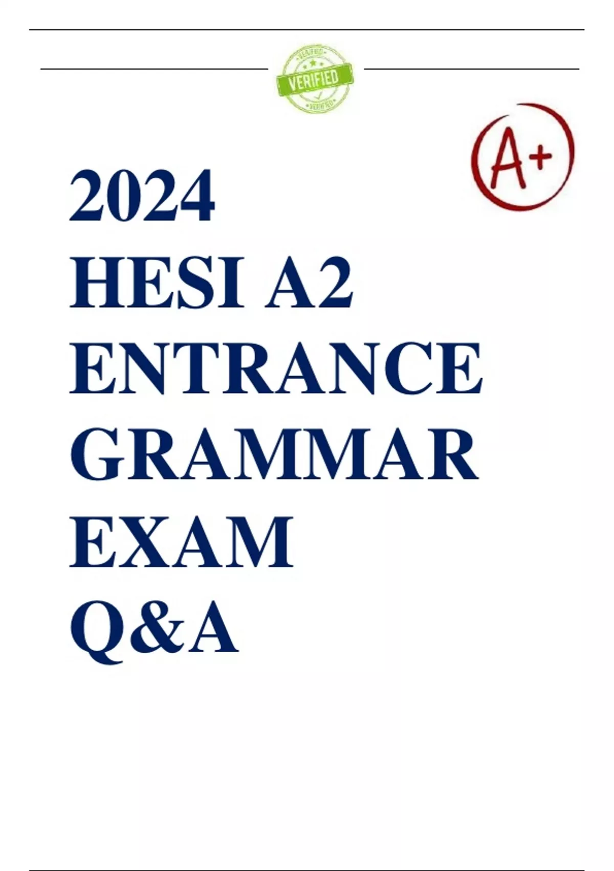, 2024 HESI A2 ENTRANCE GRAMMAR EXAM Q&A