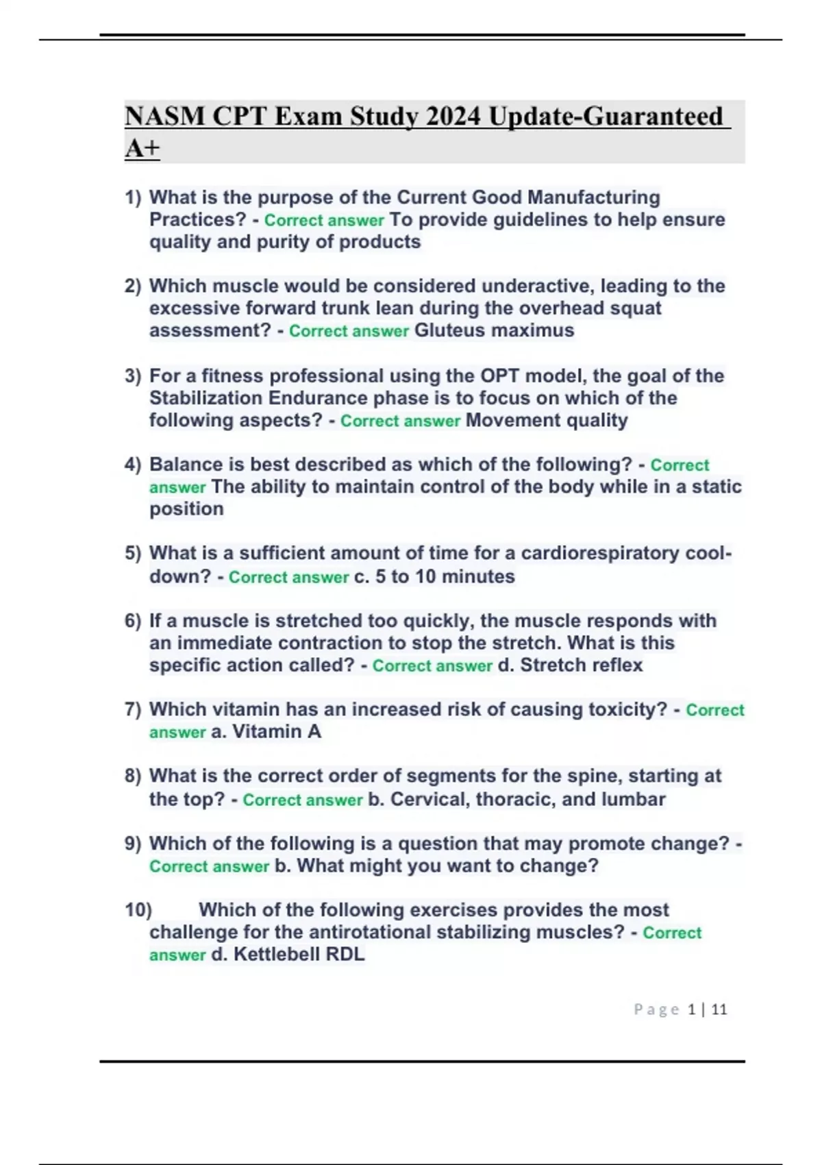 NASM CPT Exam Study 2024 Update-Guaranteed A+.