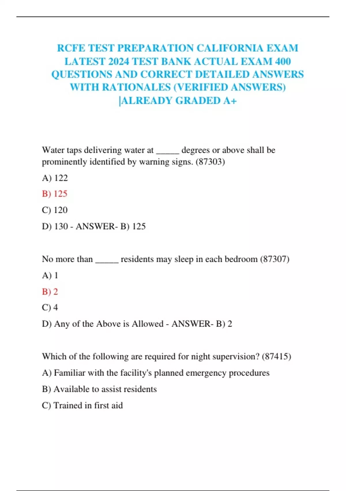 RCFE TEST PREPARATION CALIFORNIA EXAM LATEST 2024 TEST BANK ACTUAL EXAM 400 QUESTIONS AND CORRECT DETAILED ANSWERS WITH RATIONALES (VERIFIED ANSWERS) |ALREADY GRADED A+
