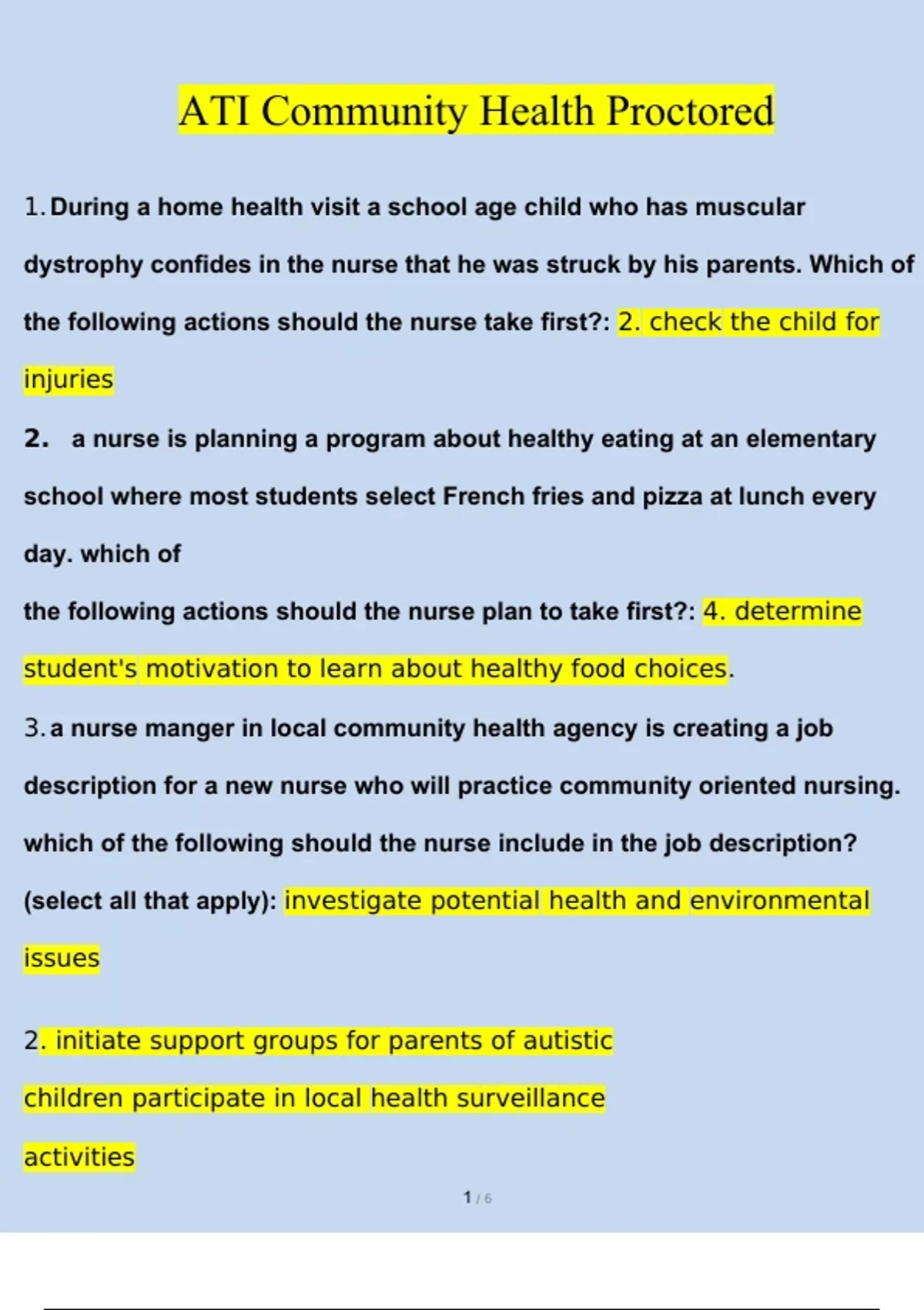 ATI COMMUNITY HEALTH PROCTORED EXAM BUNDLED 2024/2025 Questions with Answers (60 Q&A) (Detail Solutions).