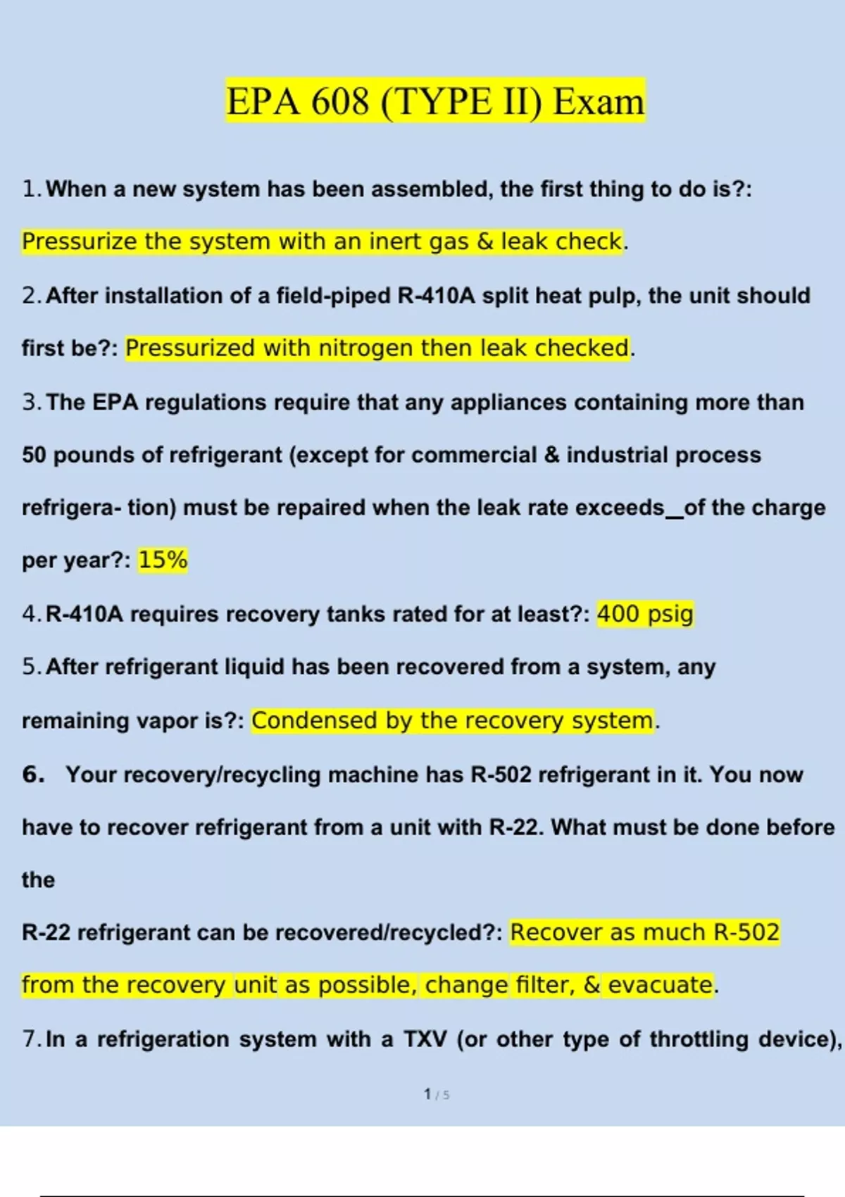 EPA 608 (TYPE II) Exam Questions and Answers (2024/2025)(Verified Answers)