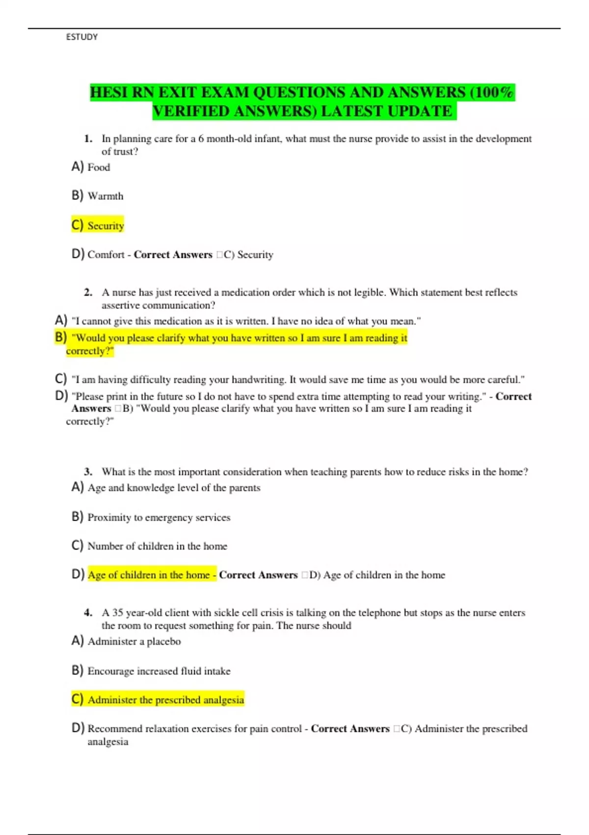 HESI RN EXIT EXAM QUESTIONS AND ANSWERS (100% VERIFIED ANSWERS) LATEST UPDATE
