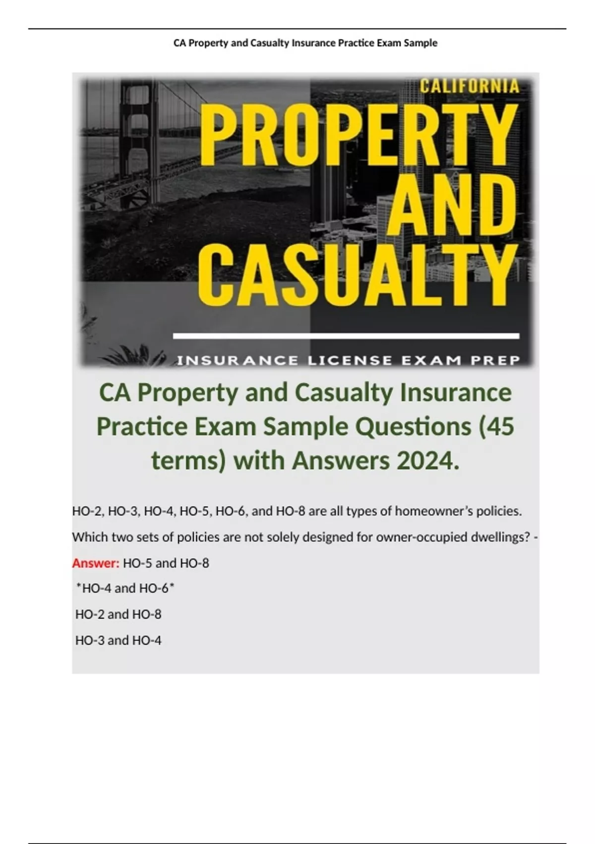 , CA Property and Casualty Insurance Practice Exam Sample