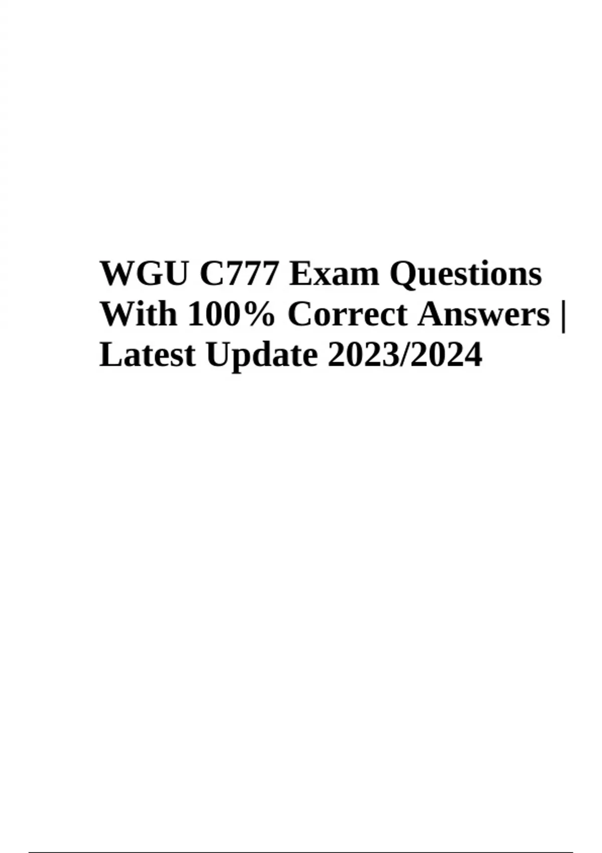 WGU C777 Exam Questions With 100% Correct Answers Latest Update 2024 (Graded A+)