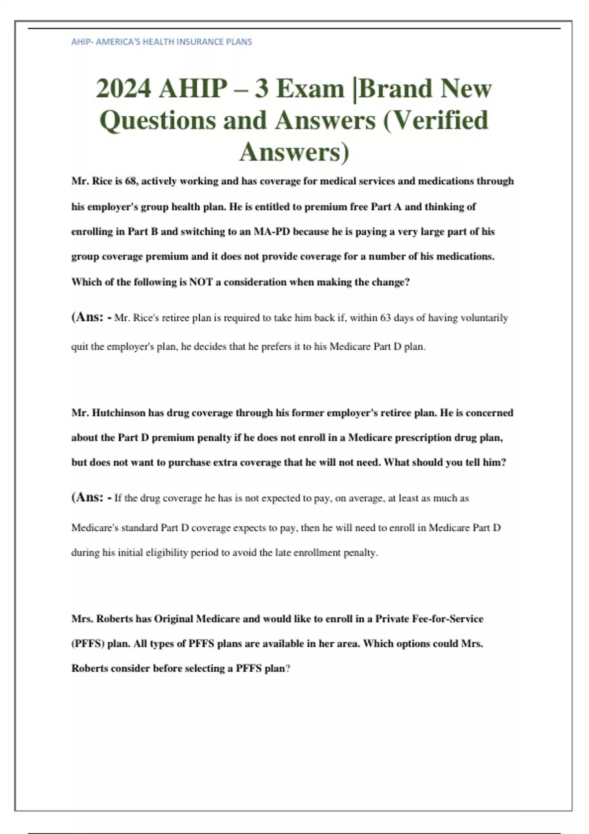 2024 AHIP – 3 Exam |Brand New Questions and Answers (Verified Answers)