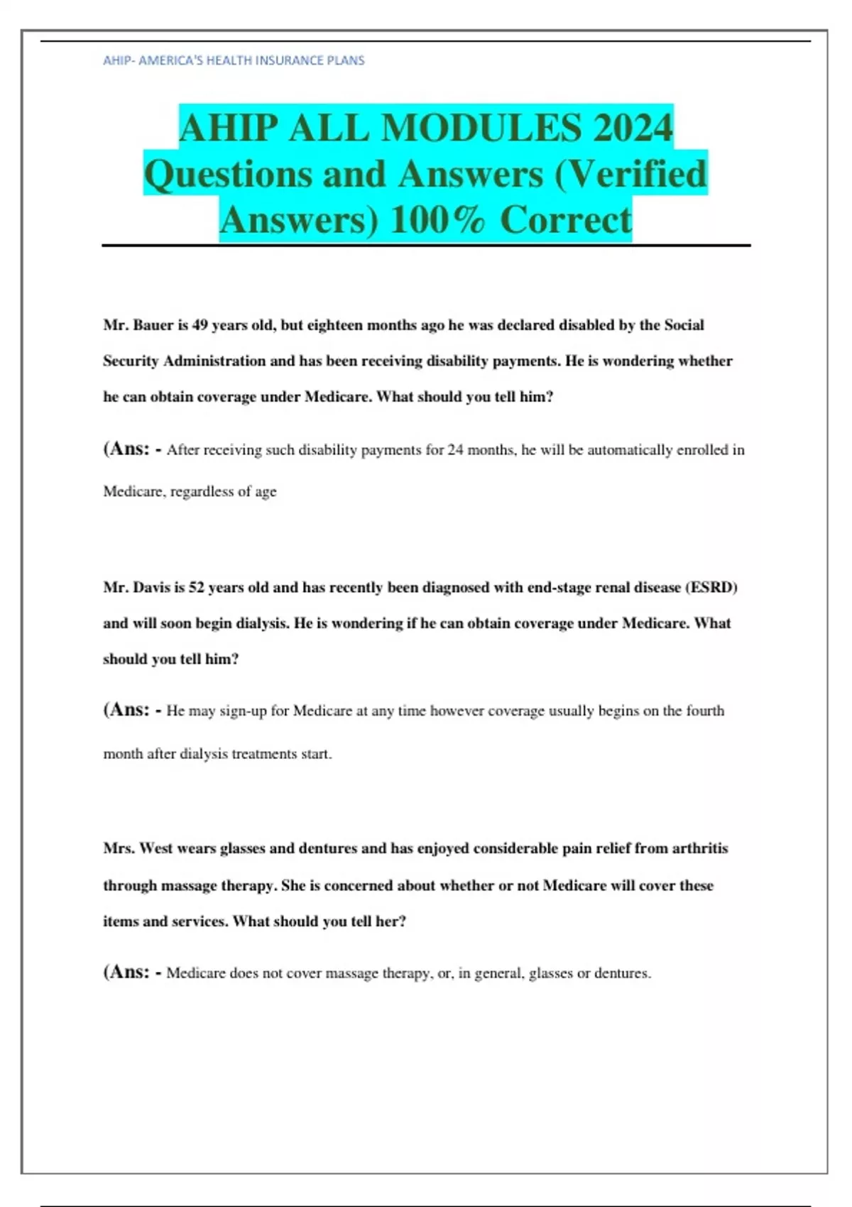 AHIP ALL MODULES 2024 Questions and Answers (Verified Answers) 100% Correct