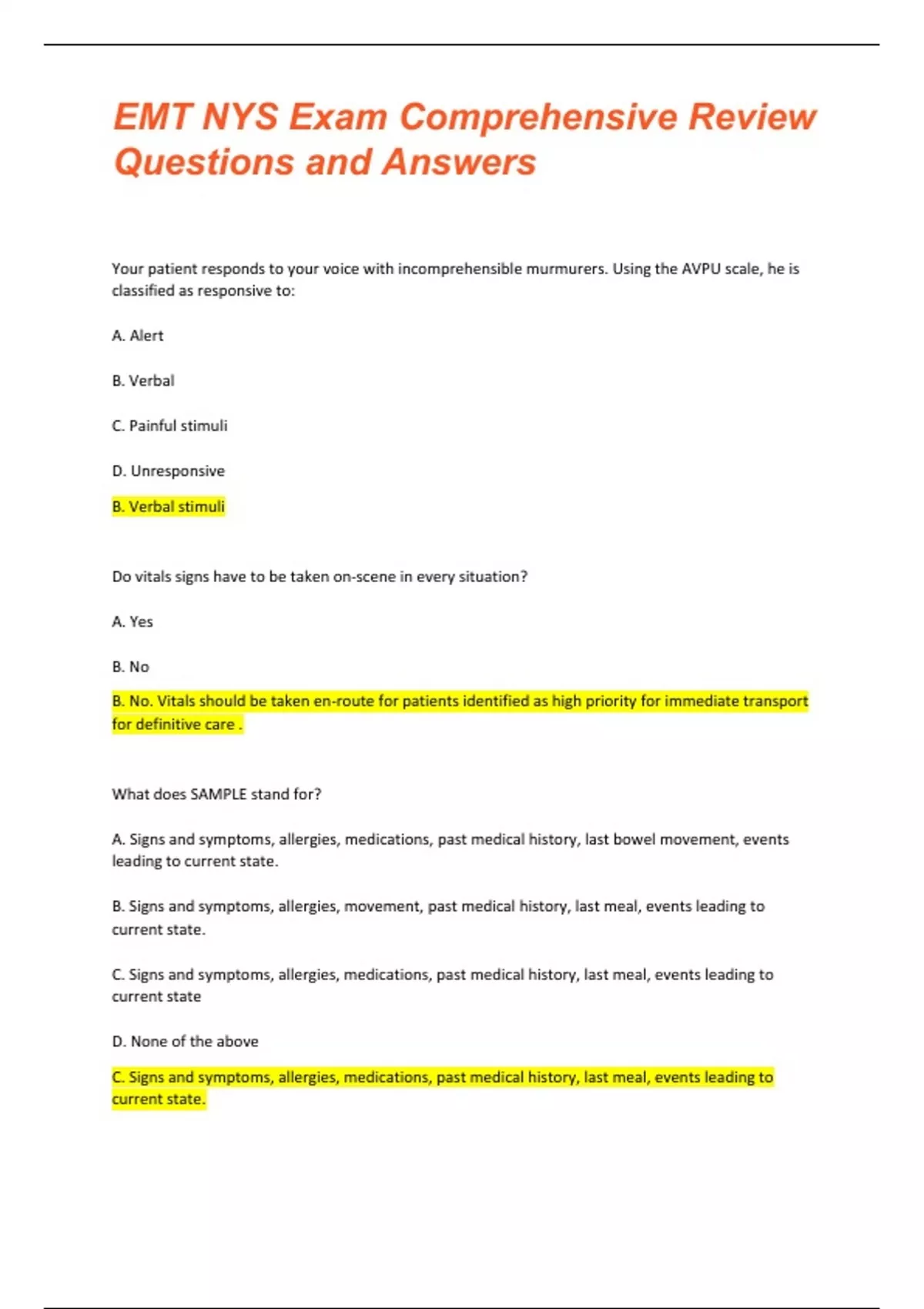 EMT NYS Exam Comprehensive Review-With 100% verified solutions