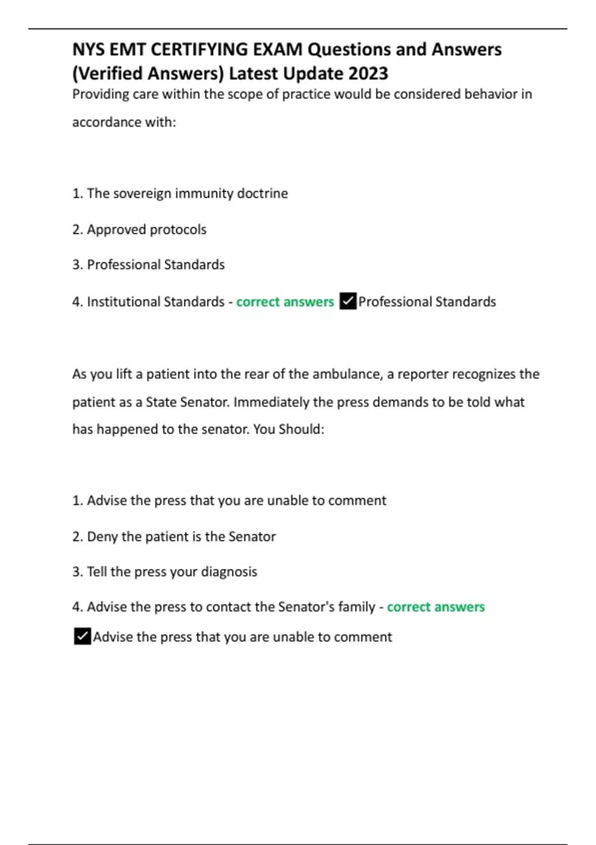 NYS EMT CERTIFYING EXAM Questions and Answers (Verified Answers) Latest Update