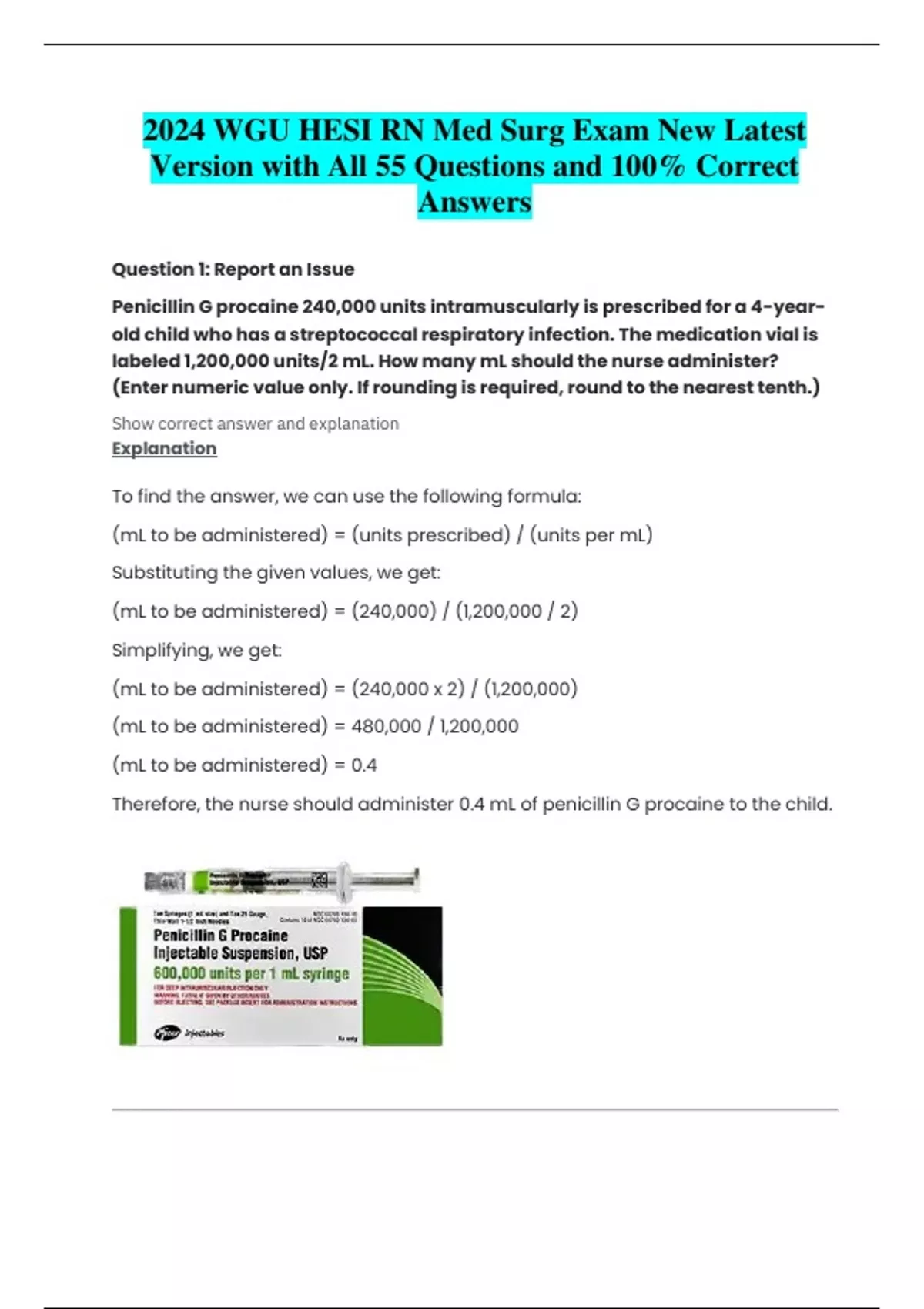 2024 WGU HESI RN Med Surg Exam New Latest Version with All 55 Questions and 100% Correct Answers