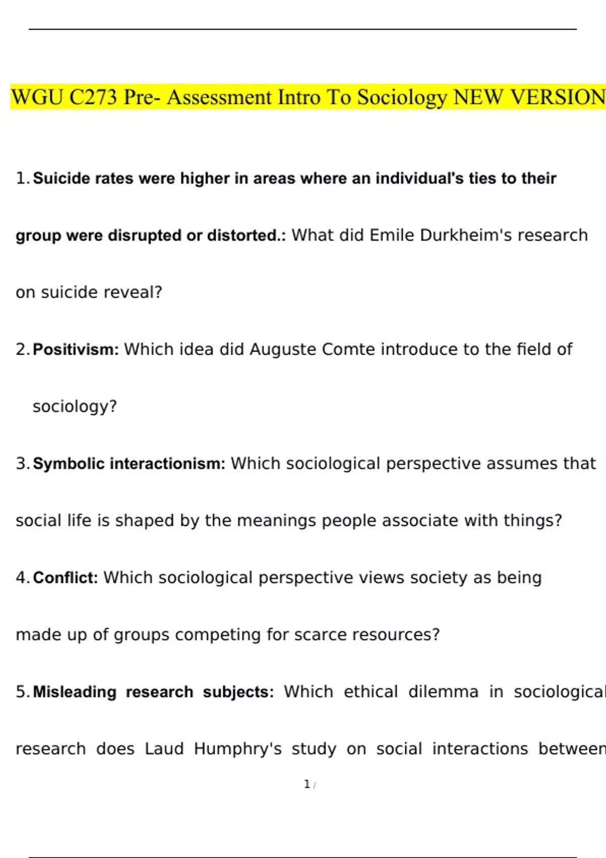 - WGU C273 (Pre- Assessment Intro To Sociology