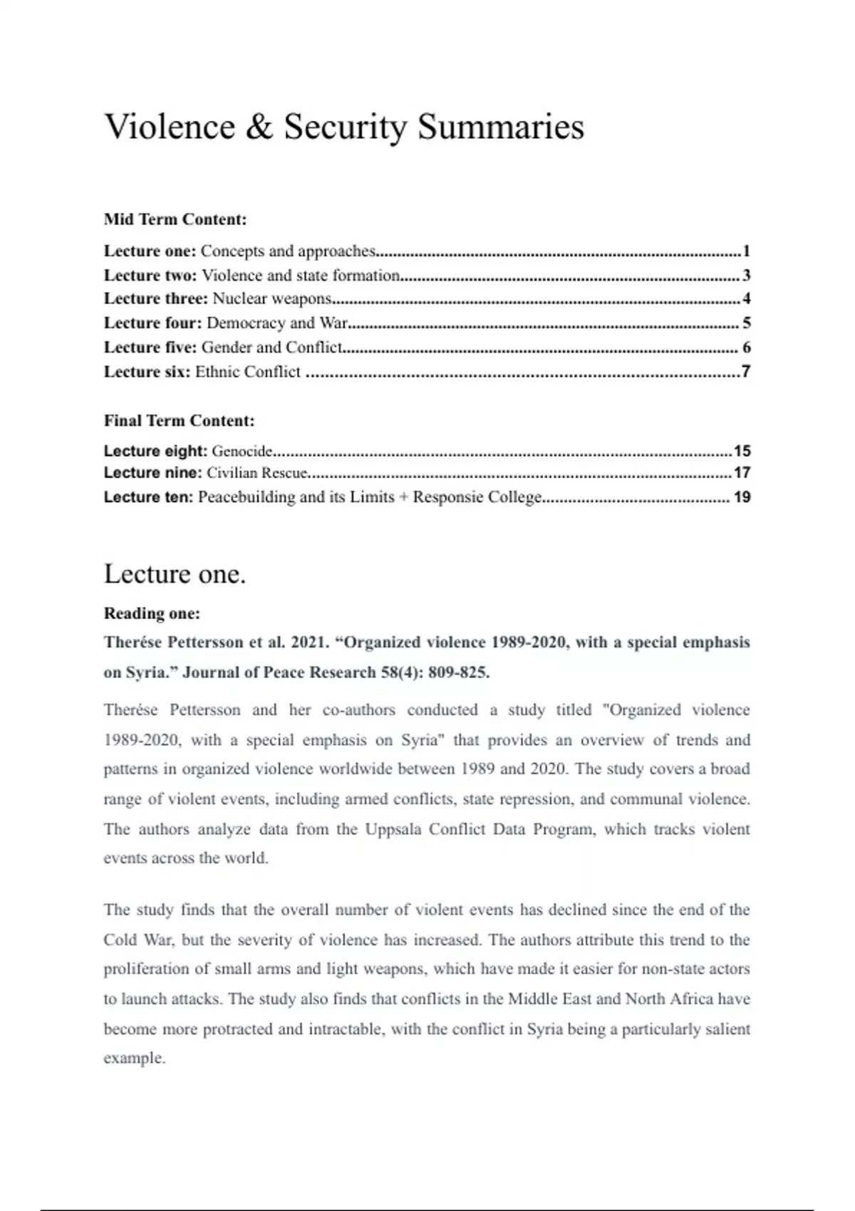 Lecture ten: Peacebuilding and its Limits + Responsie College........................................... 19