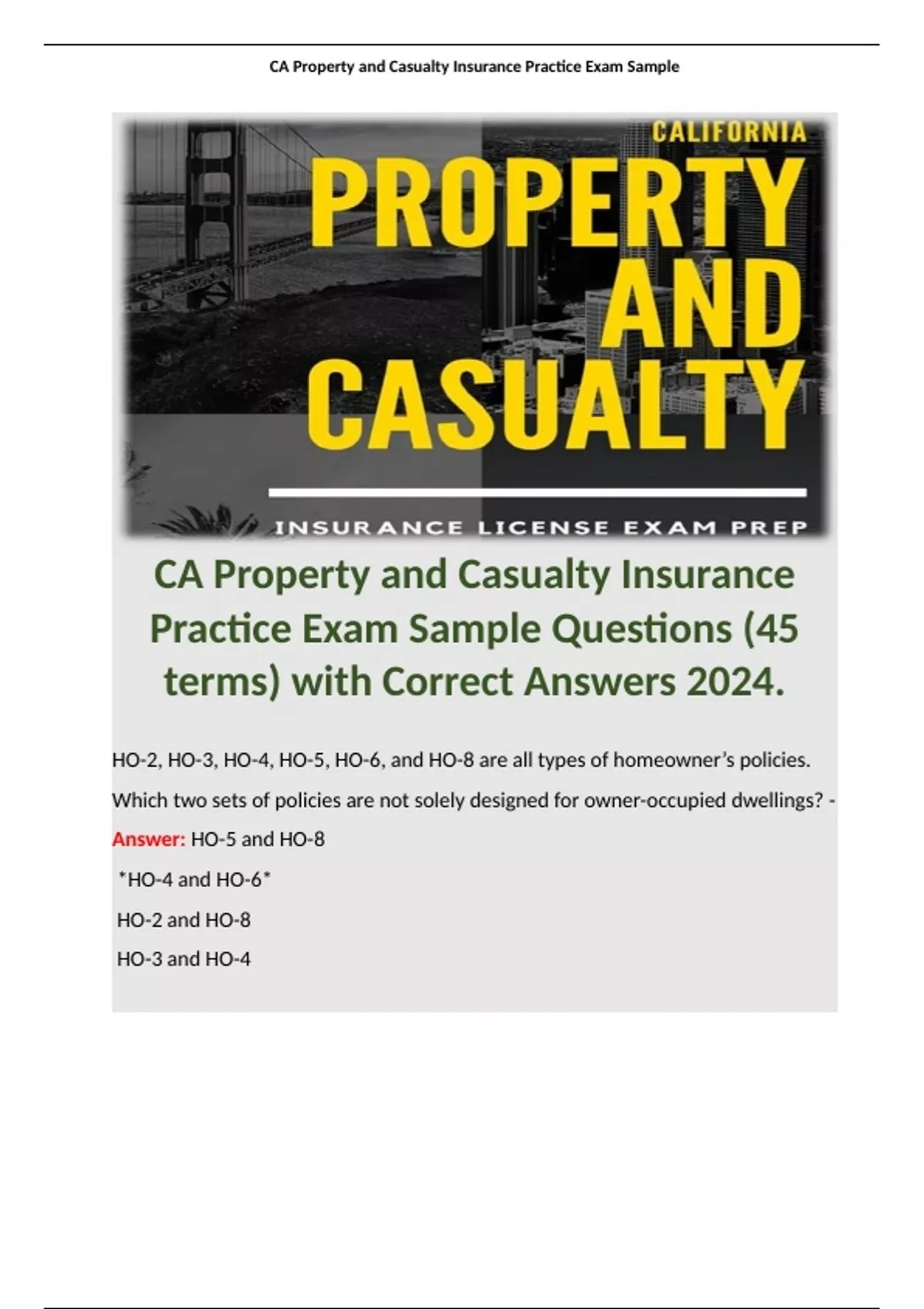 , CA Property and Casualty Insurance Practice Exam Sample