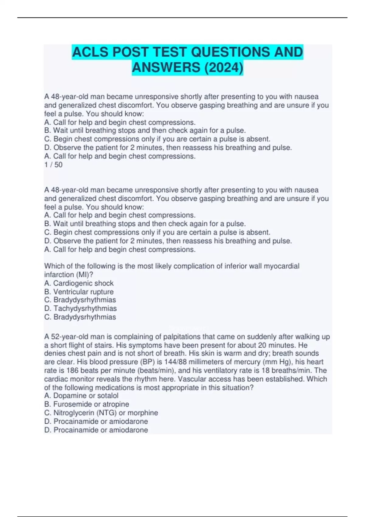 ACLS POST TEST QUESTIONS AND ANSWERS (2024)